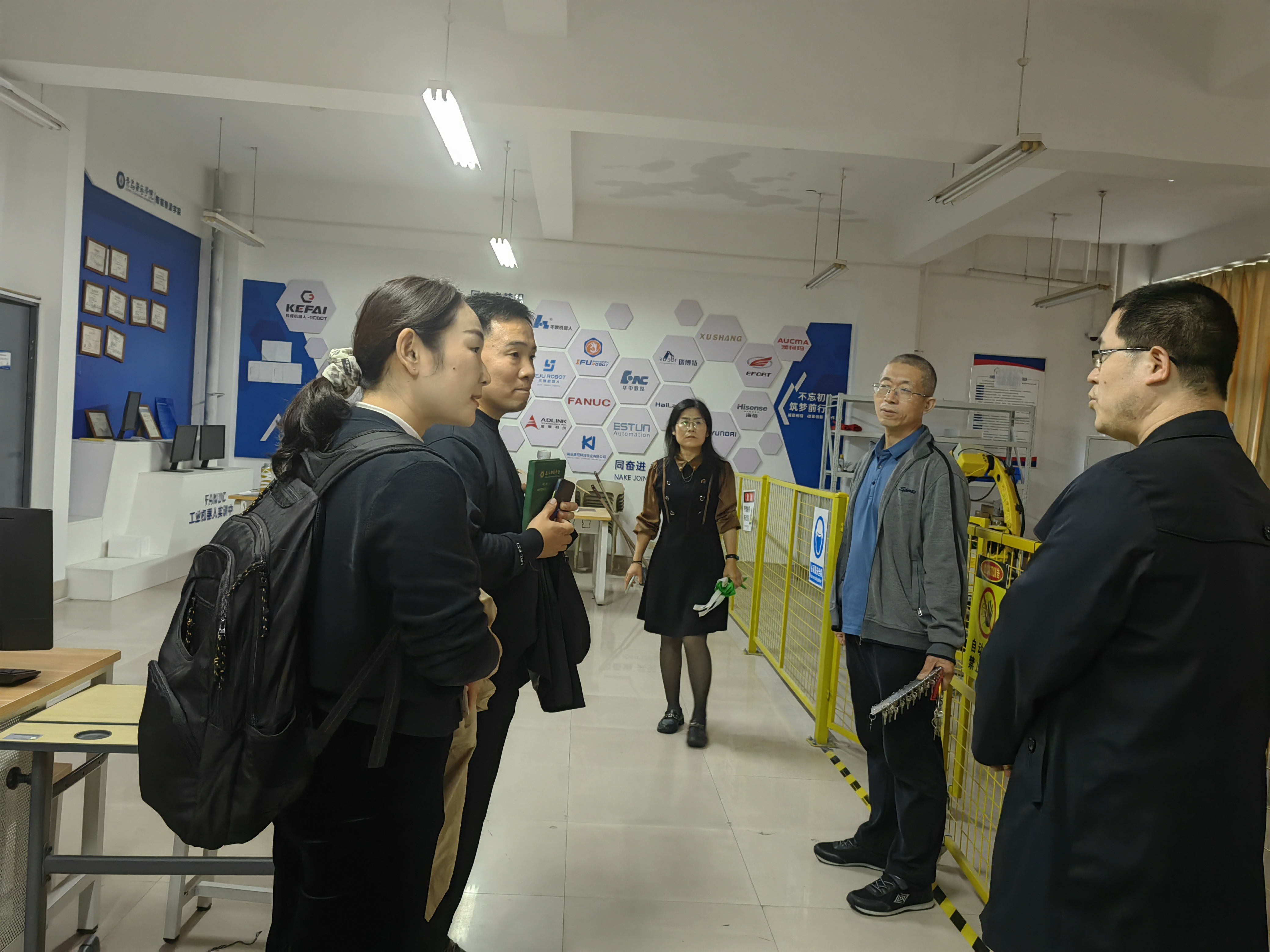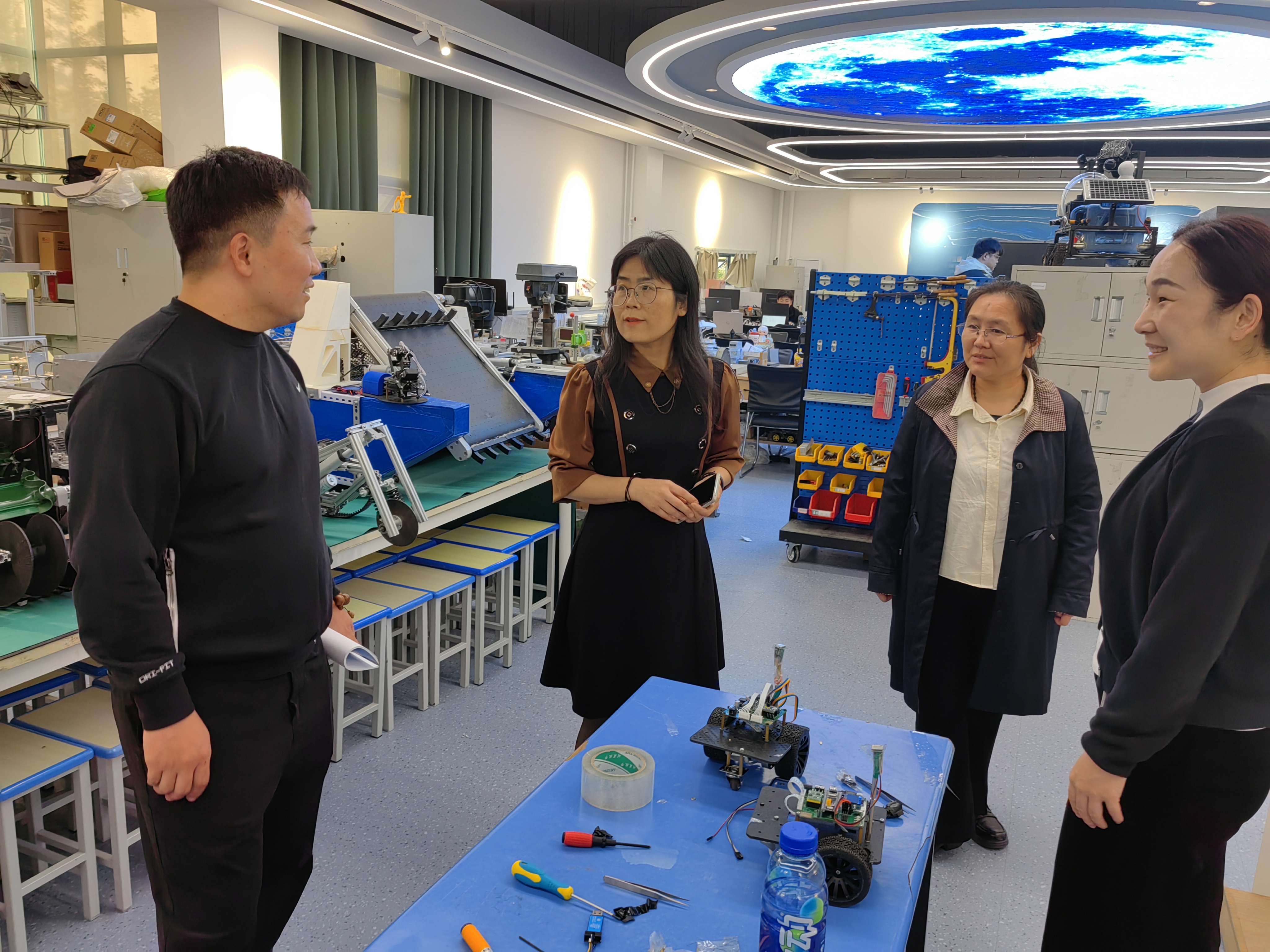 为进一步深化校际交流,共同提升智能制造工程领域人才培养质量与专业建设水平,2025年10月16日下午,泰山科技学院智能制造教研室主任、智能制造工程专业教学团队负责人宋晓波主任带领骨干教师刘立辉、游玲玲、王惠一行四人来我校智能制造学院参观交流。我院教学秘书宋慧、质量监控中心主任邵瑞影、机械工程系副主任葛伟伟、实验室副主任宋娟、创新创业主任李媛媛共同参与了接待与交流活动。