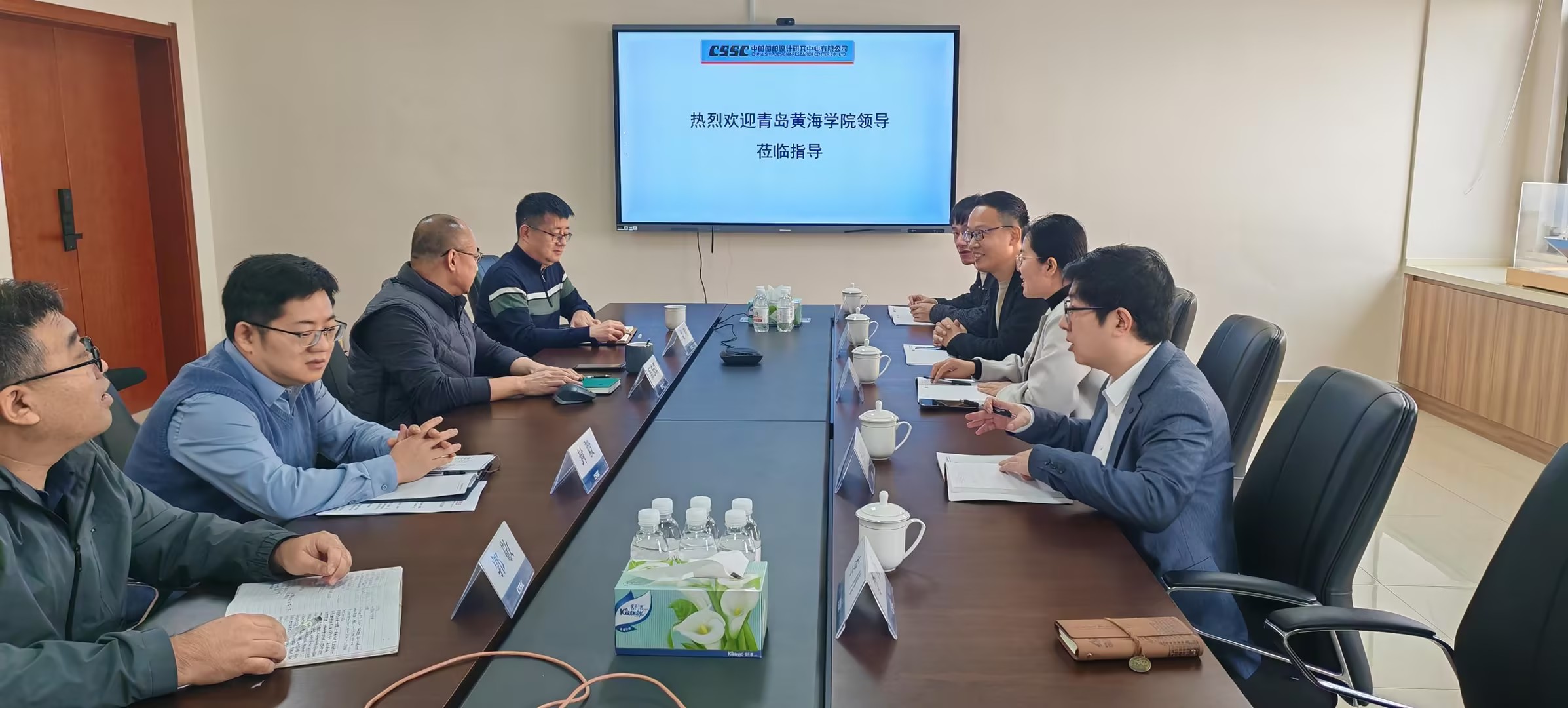 为进一步深化校企合作、推动产学研协同发展,近日,青岛黄海学院智能制造学院常务副院长陈玉杰带领船舶工程系杜友威主任及三位骨干教师,一行五人前往中船船舶设计研究中心有限公司(民船中心)进行走访调研。此次交流旨在对接行业前沿需求,探索校企合作新模式,为提升人才培养质量、拓宽学生实践与就业渠道、开展深入产学研合作奠定坚实基础。