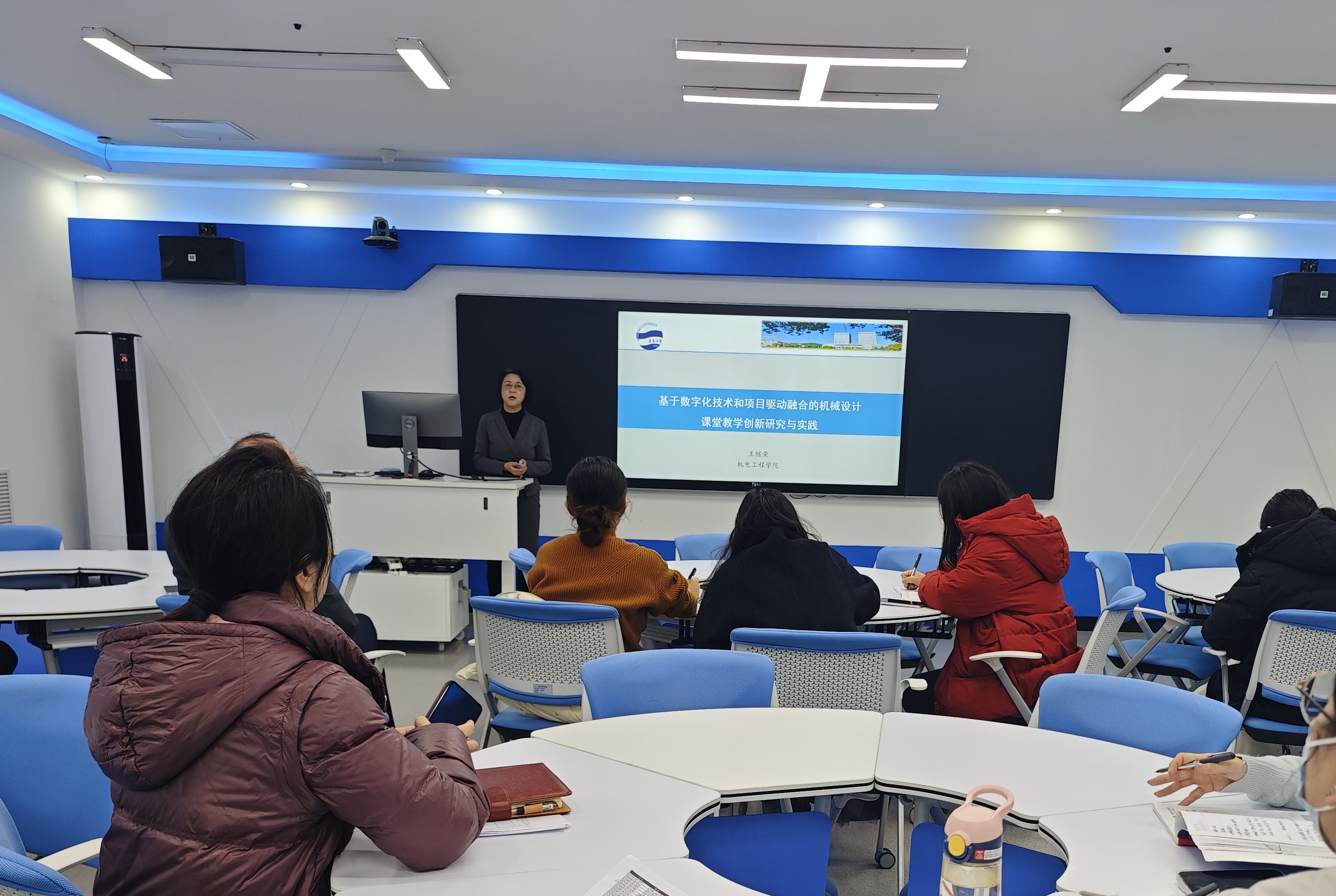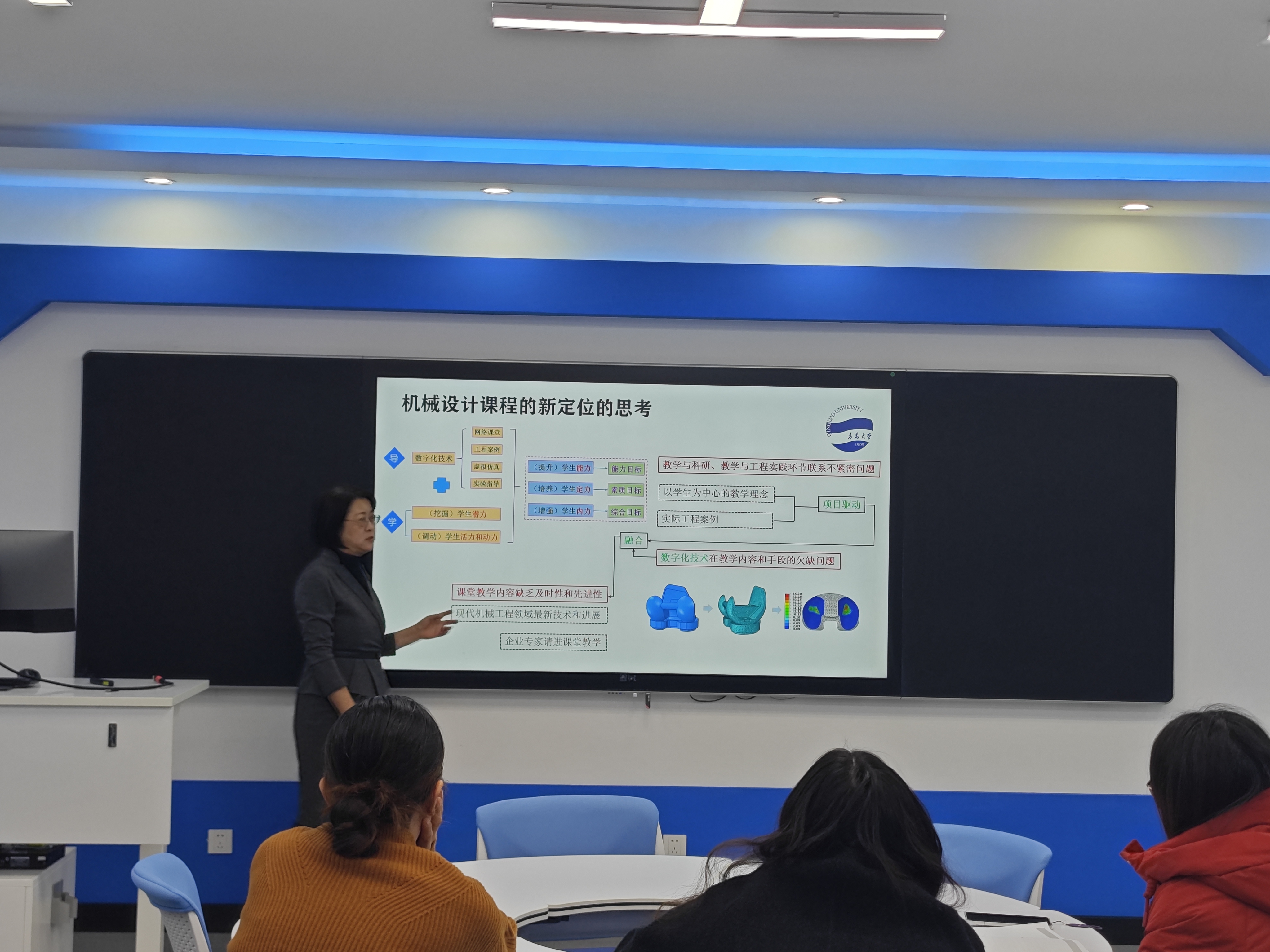2025年12月16日14:30,青岛大学王继荣教授受邀到知行楼303智慧教室作主题报告,题为“数字化技术与项目驱动融合的机械设计课堂教学创新”,学院部分骨干教师与青年教师参会,报告由机械工程系系主任孙维丽老师主持。