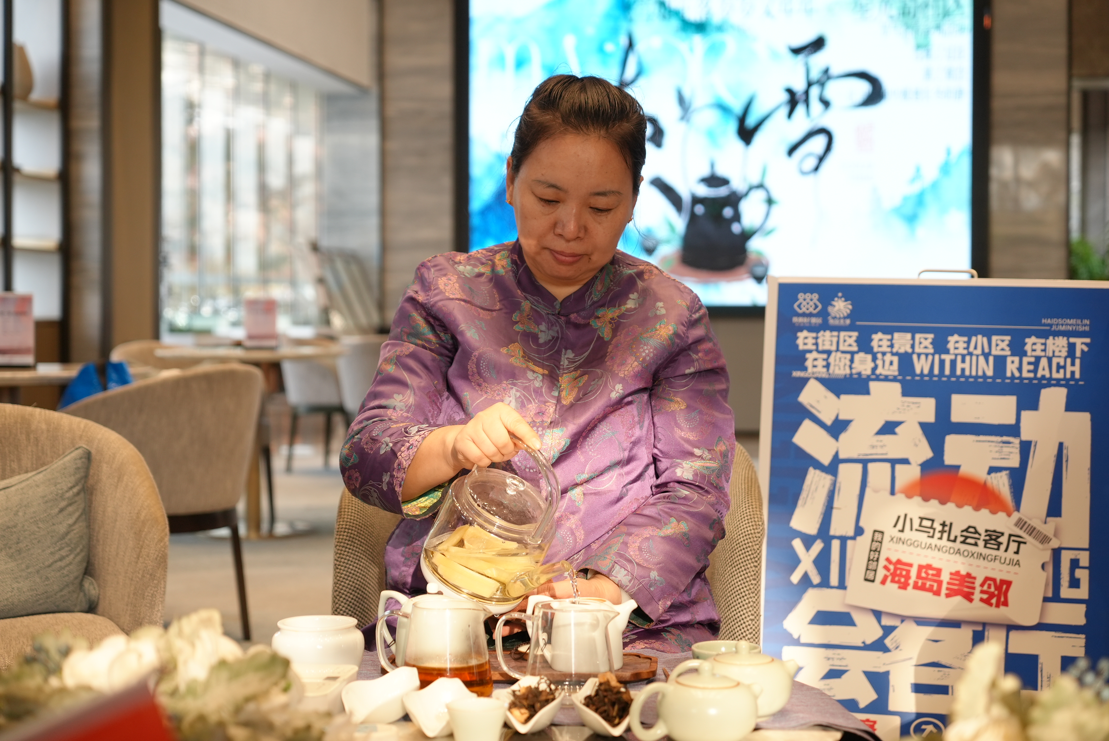 茶香袅袅,笑语盈盈,当大学生遇上资深茶艺师,一场跨越年龄与阅历的文化体验悄然上演。12月2日下午,海月星湾售楼处内,高级茶艺师荆思琪正耐心引导着参加活动的社区居民和来自智能制造学院小黄锋志愿者协会的志愿者们,一场别开生面的“大雪节气茶会”正在这里举行。茶香四溢中,共同聆听荆老师讲解大雪时节的茶养之道。