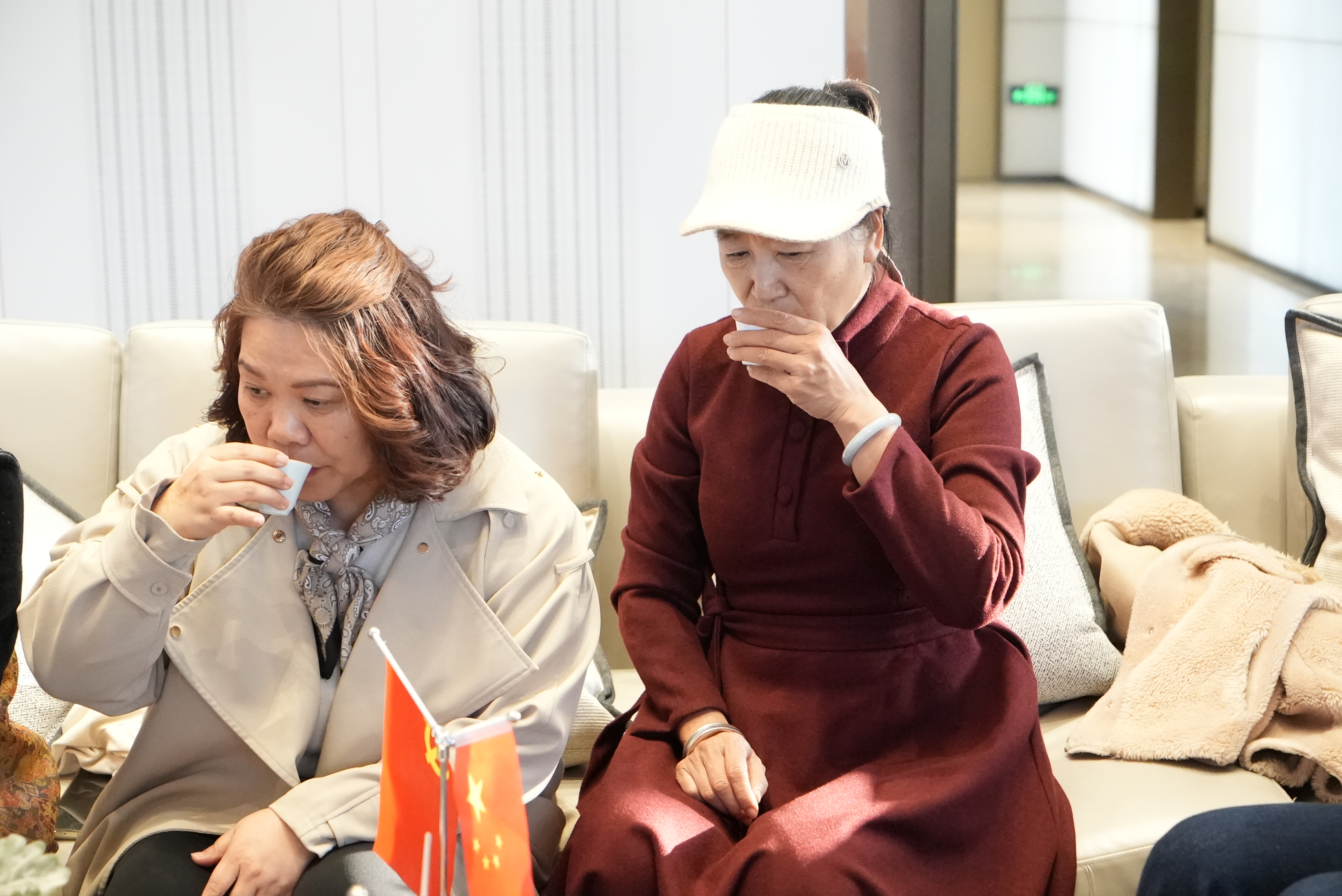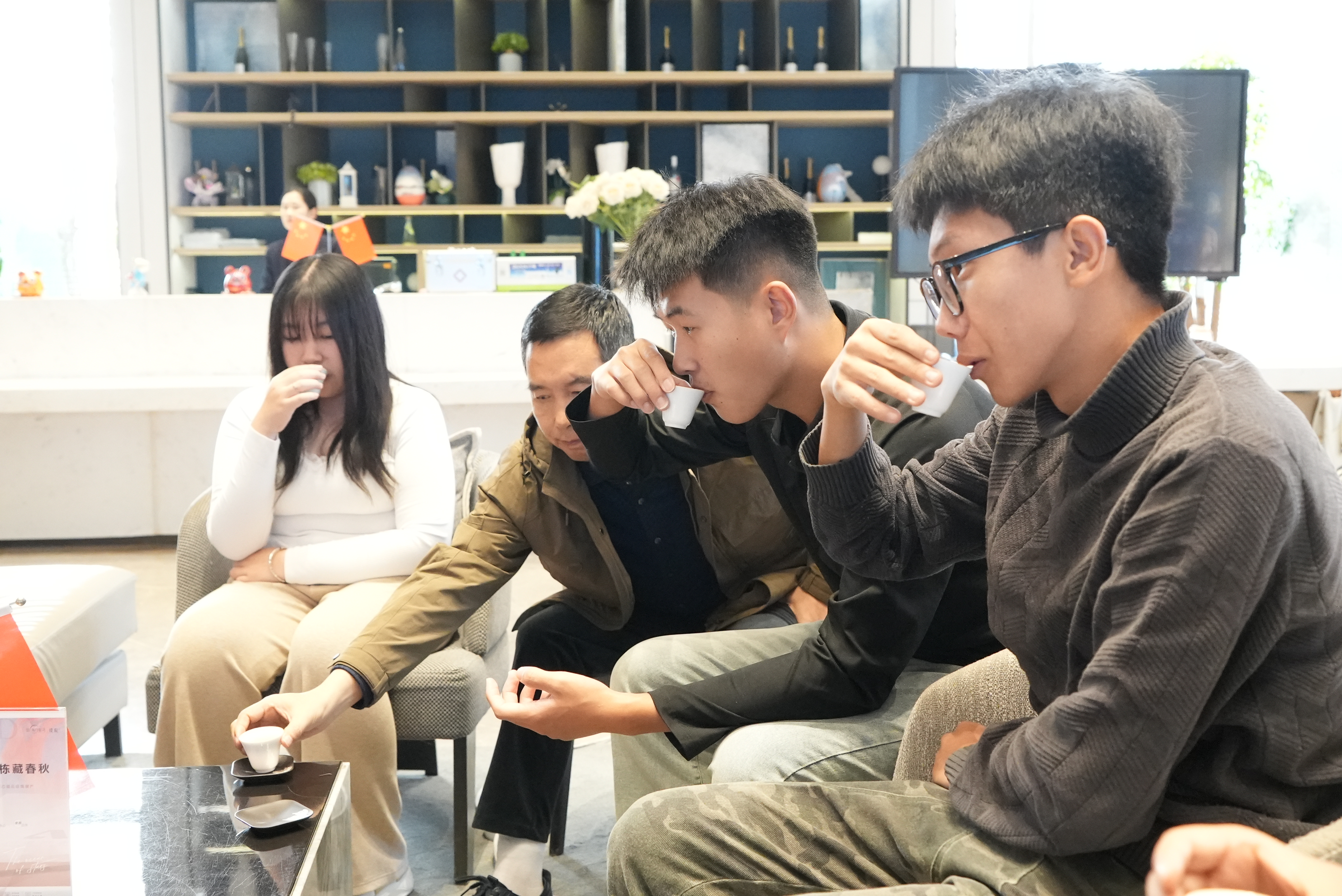 理论知识分享后,活动进入了最受欢迎的茶品品鉴环节。荆老师精心准备了五种不同类别的茶品,涵盖乌龙、红茶、黑茶等多个品类。她熟练地操作着茶具,先温杯、再投茶、注水、出汤,动作优雅流畅。“品茶讲究观色、闻香、品味,每一步都有其独特意义。”荆老师边操作边讲解。第一泡是香气高雅的单丛茶,汤色金黄透亮。“请先闻香,注意感受它的兰花香和果香。”参与者们轻嗅着杯中香气,脸上露出惊喜的表情。五种茶品依次品鉴,每一种都有独特的风味和特点。现场氛围轻松愉快,茶香与人情味交织在一起,温暖了整个空间。