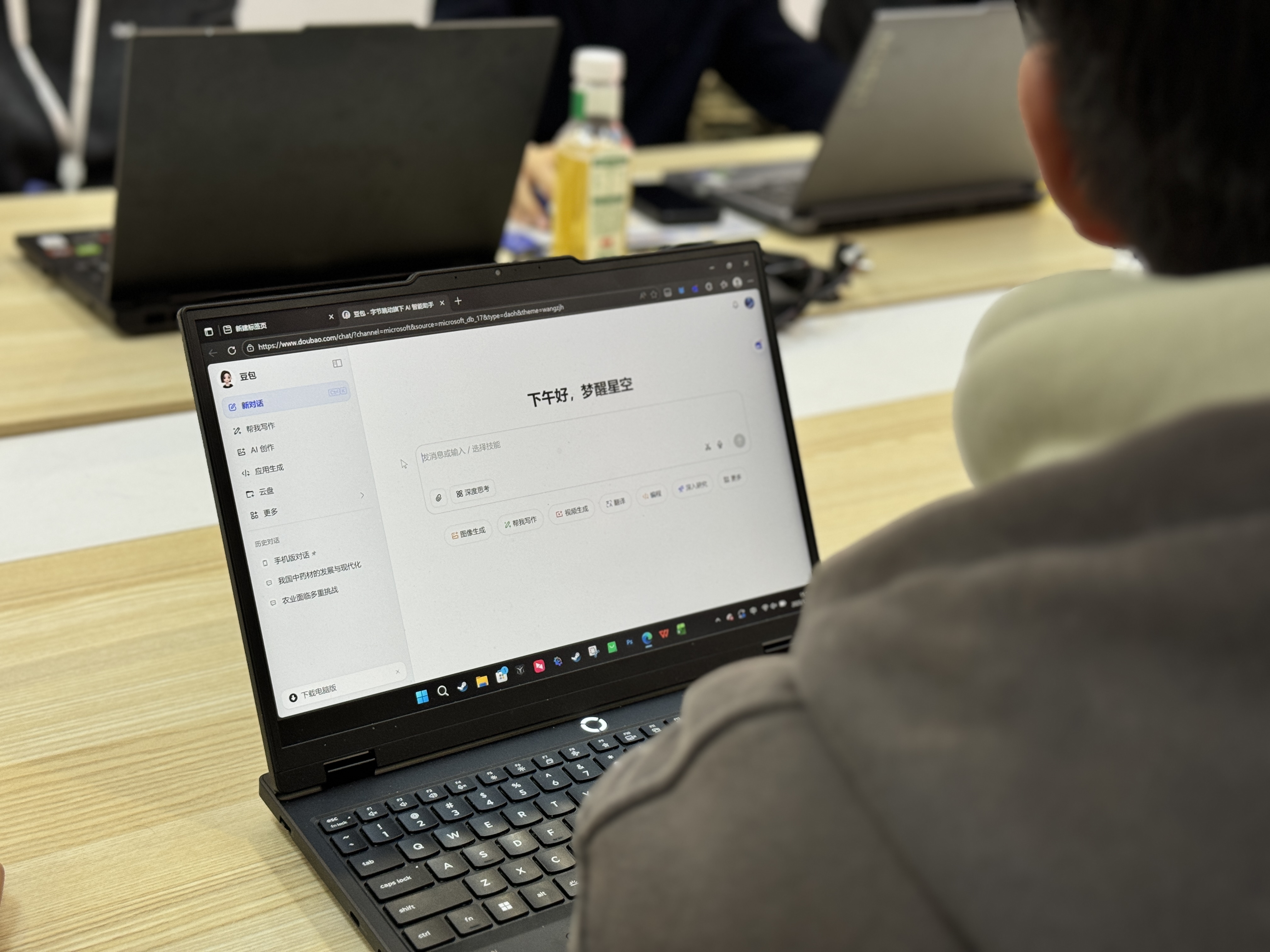 活动现场,社区经验丰富的老师们化身“智慧导师”,为年轻学子们开启了一扇通往智能生活的大门。社区老师们精心准备了“豆包”“即梦AI”“纳米AI”等多款实用智能软件的教学课程。他们不仅讲解软件的基本功能,更分享了自己在日常生活中应用这些工具的心得体会。