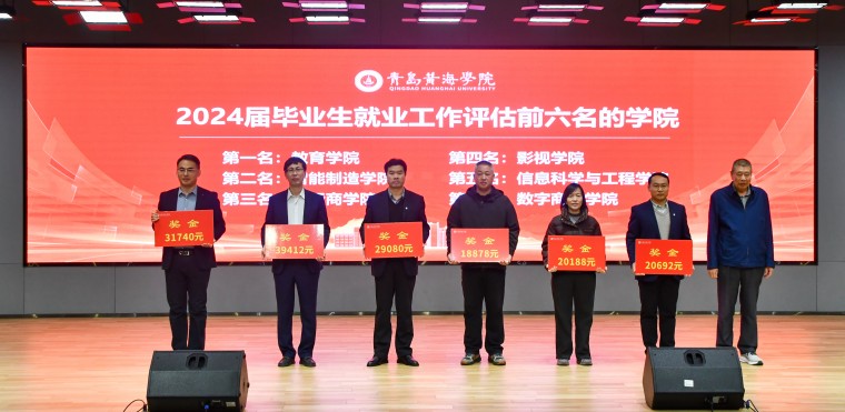 12月18日上午,青岛黄海学院2024届毕业生就业工作表彰暨2026届毕业生就业工作启动会在知信楼报告厅召开。校长李清山、副校长梁忠环、刘纪新、王鹏程出席会议。各二级学院及相关部门负责人、各二级学院就业专岗教师、毕业班辅导员及招生就业处全体人员参加会议。会议由党委委员、副校长刘纪新主持。