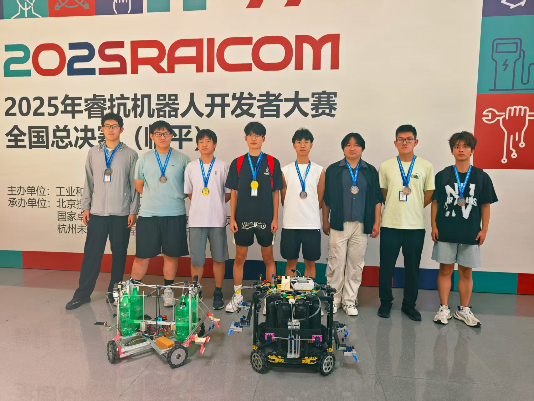 2025睿抗机器人开发者大赛(RAICOM)大赛分为CAIR工程竞技、CAIA数字文化创意、CAIM工程创客、CAIP信息技术创新4个赛道,我院学生主要参加CAIA、CAIR两个赛道。经过校赛、省赛的激烈角逐,共有14支队伍入围国赛。由于规模原因,国赛采取了分批、分段进行,分别在浙江余杭和临平进行。