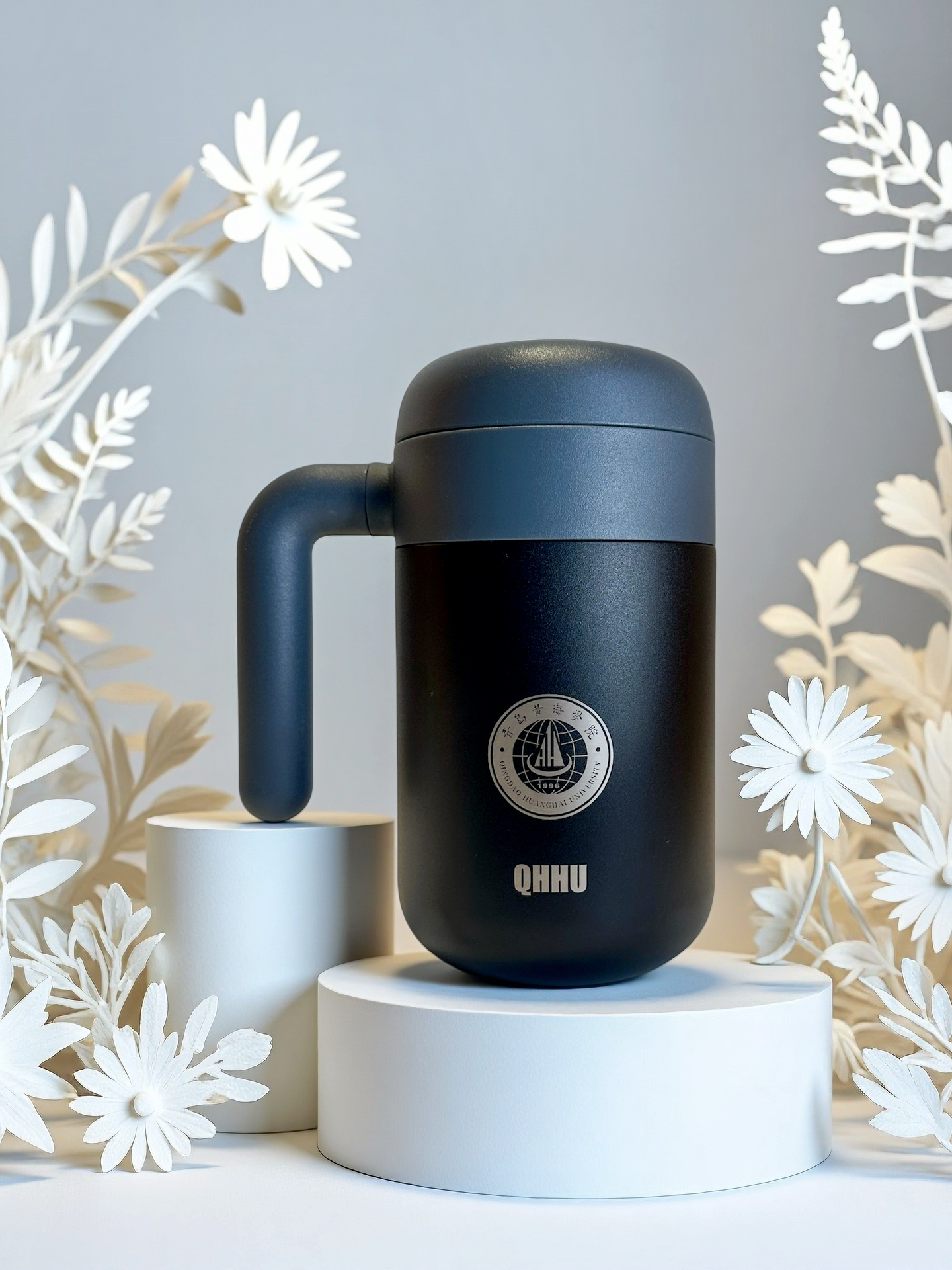 青岛黄海学院文创纪念品——黄海手柄便携泡茶杯(黑)