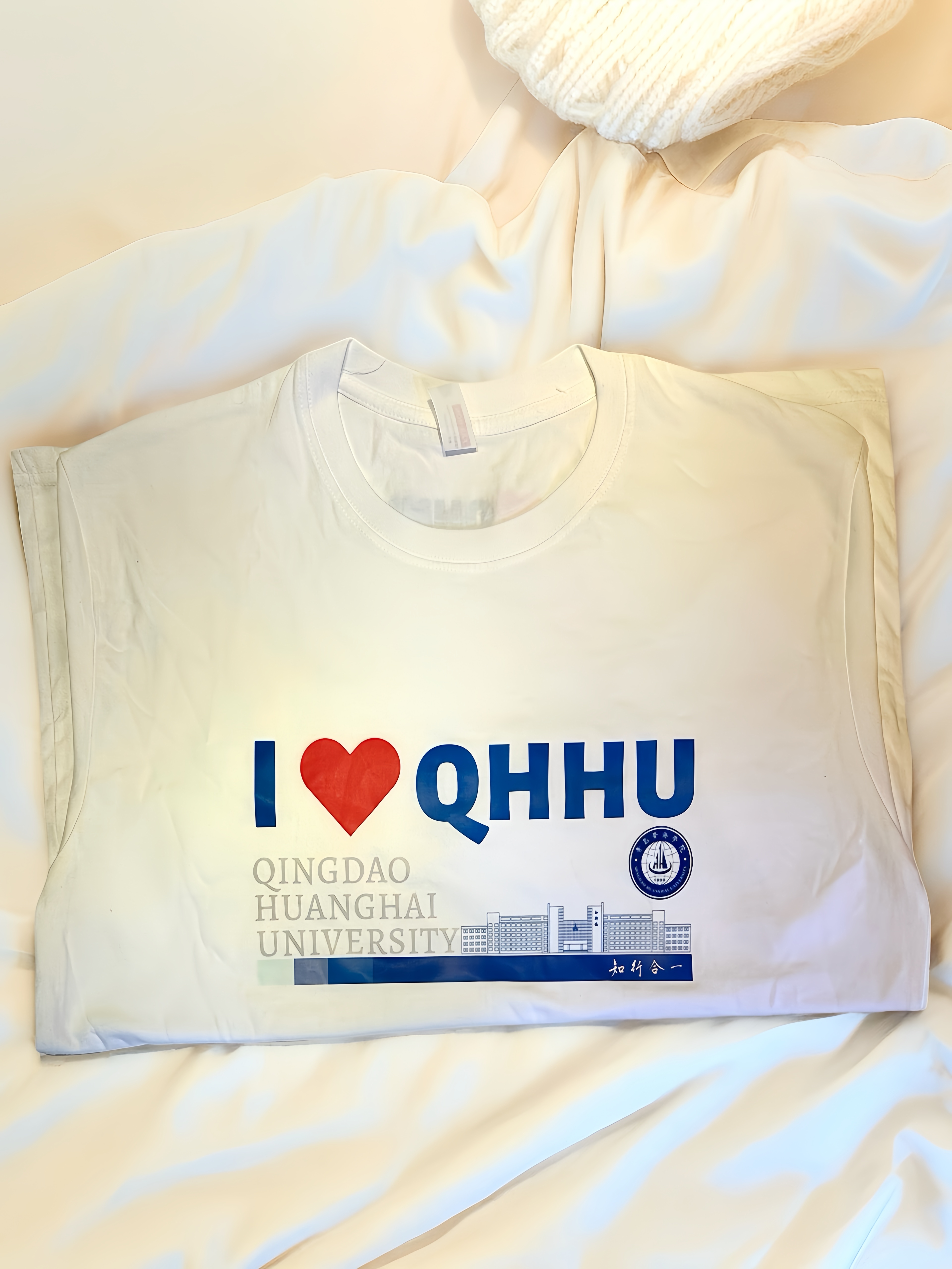 青岛黄海学院文创纪念品——I QHHU短袖t恤(蓝)