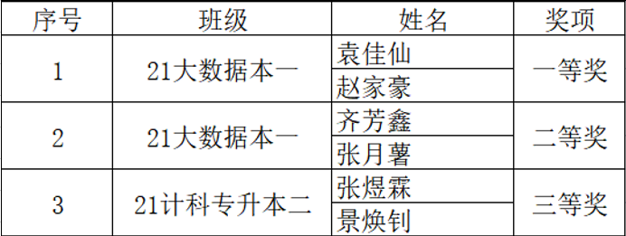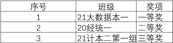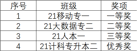 在这场比赛中我们都是获胜的一方,我们都为班级奋力一搏,收获的是班级的凝聚力和认同感。此次比赛获奖名单如下: