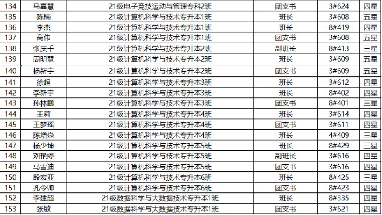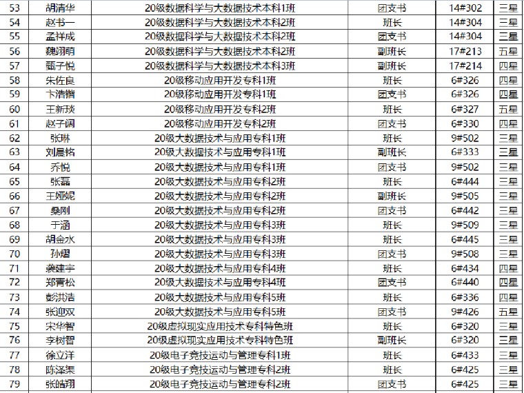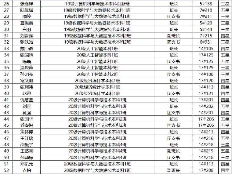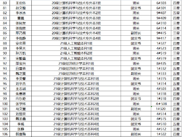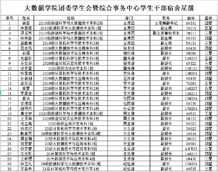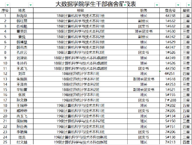 为方便学生干部工作,让同学们深入了解学生干部的宿舍情况,现公布12月学生干部星级宿舍以及优良学风宿舍。