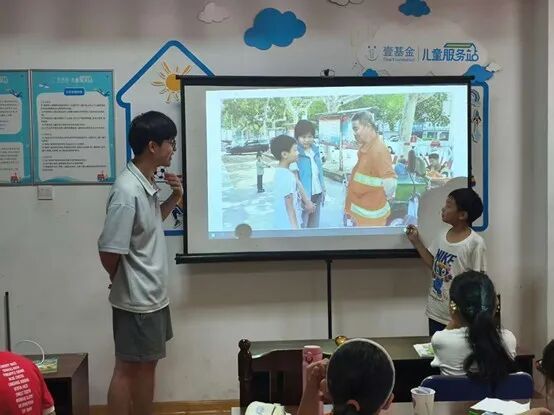所有小组完成寻访返回活动室后,志愿者组织分享活动,孩子们纷纷举起记录卡讲述感受,小阳说“环卫工爷爷凌晨就上班,好辛苦,我以后再也不扔垃圾了”,小雨兴奋地说“药师阿姨要学好多知识,我以后也要认真学习,而且我今天敢主动说话了,好开心”,其他孩子也陆续分享着自己的见闻与突破,志愿者总结道“社区里的环卫工师傅、药师阿姨都是‘微光者’,他们的平凡付出让社区更温暖,而大家最棒的是勇敢迈出了主动交流的第一步,这就是最大的成长”。