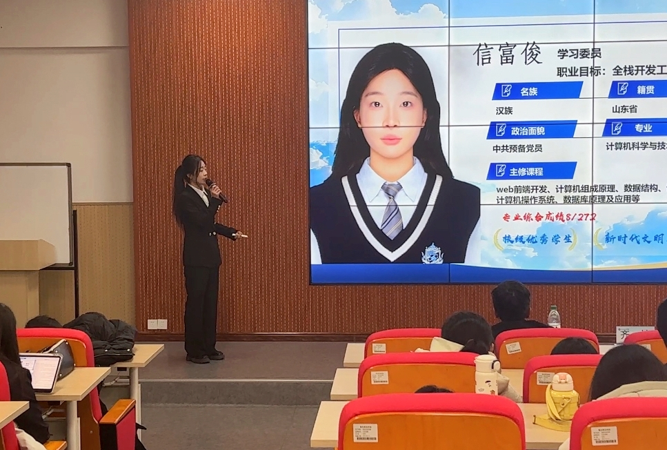 比赛现场气氛热烈而庄重。11名选手依次上台,通过生涯发展报告陈述与PPT展示,系统呈现了各自的职业梦想、行动轨迹与未来蓝图。评委徐哲、暴海忠老师对每位选手的表现给予了专业、细致的点评,既充分肯定了选手们规划的系统性与展示的亮点,也精准指出了在职业认知深度、目标可行性分析、实践成果量化等方面存在的不足,并提供了宝贵的改进建议,使比赛成为一堂生动的沉浸式生涯教育课。