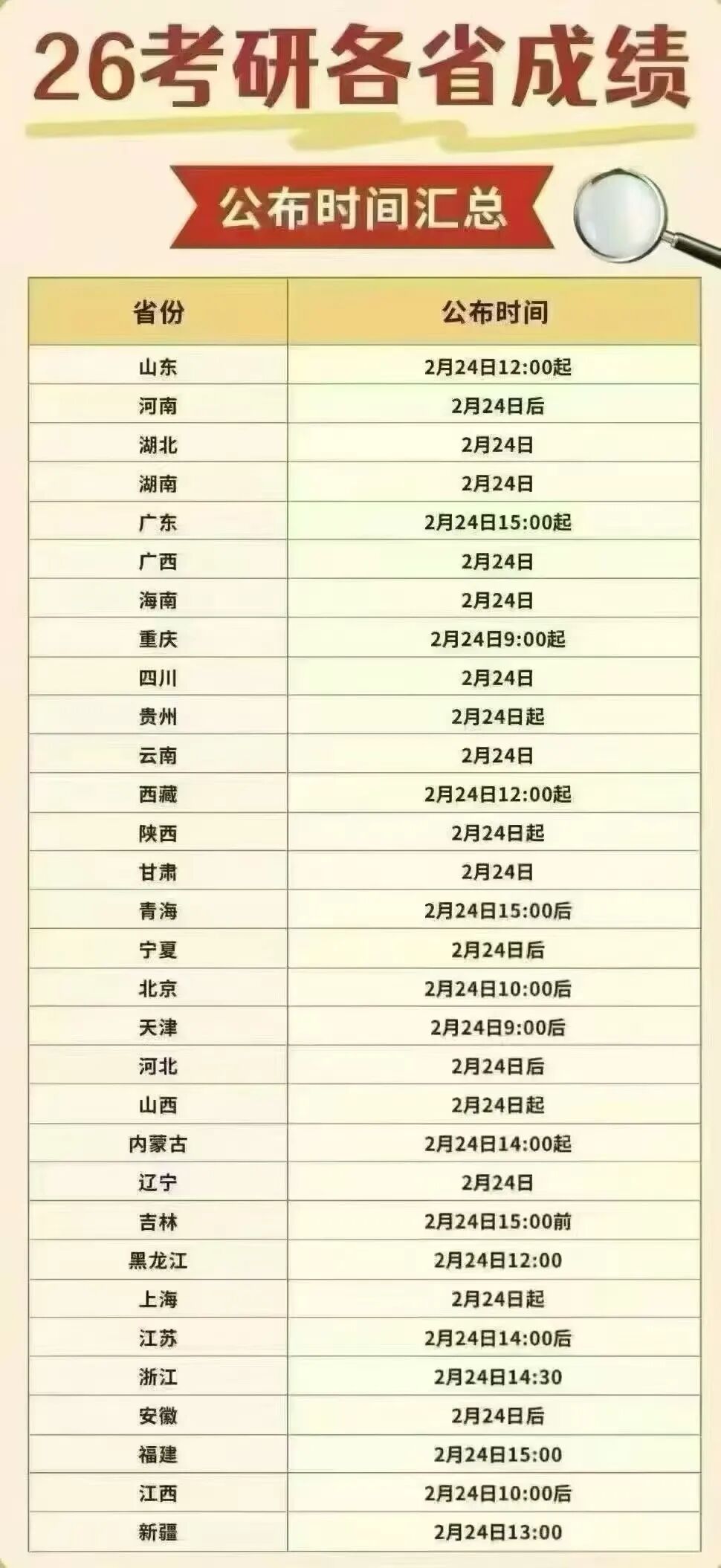 重点省份节点:预计江西2月24日后可查(评卷2月中旬前完成),广西2月下旬公布(1月上旬已启动评卷),北京、天津、河北、辽宁等多省市同步跟进,各省时间差不超过3天,2月28日前均可查询。