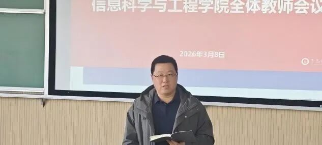 3月8日上午,信息科学与工程学院召开学期初全体教师大会,学院领导班子及全体教师参加会议,全面部署新学期各项重点工作,统一思想、明确任务、压实责任,为学院新一年高质量发展谋篇布局。