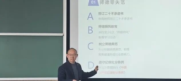 孙守强副院长强调工作底线与发展要求。要求全体教师严守师德零失范、安全零事故两条底线;以教师“十个一”任务、学生“五个一”能力为导向,打造示范性成果;大力推进国际交流工作,不断提升师生国际化水平。