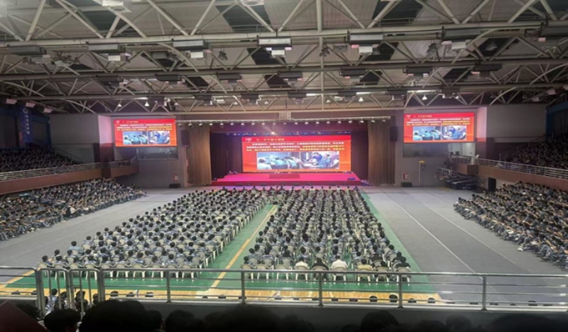 2025 年 9 月 17 日晚,青岛黄海学院体育馆内座无虚席。工程技术学院杜超院长、辅导员及 2025 级全体新生,共同聆听了马兰基地原政委、“两弹一星” 历史研究会常务副理事长孔令才少将所作的 “学思践悟‘两弹一星’精神,争做堪当民族复兴重任的时代新人” 主题报告,一场兼具历史厚重感与思政引领性的精神洗礼亦在此温情启幕。