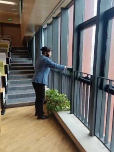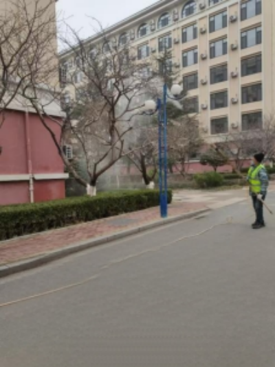 保洁班组全力开展教室撤清、地面冲刷清污工作,启用专业清洗设备,对校园西区等区域进行全方位清洁保障,让教室及公共区域焕然一新。