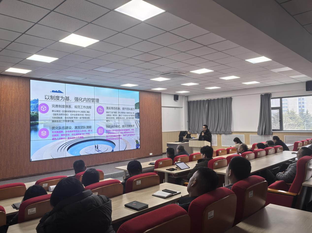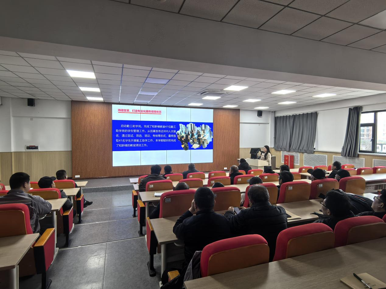 春启新程,实干致远。为全面部署新学期后勤保障部物业中心服务工作,明确目标、压实责任、凝心聚力,切实筑牢校园服务保障防线,3月2日下午2点,后勤保障部物业中心在知新楼东配201教室召开2026年度开工大会。后勤保障部物业中心分管领导、物业全体管理人员及一线员工代表参加会议,共同吹响新学期实干奋进的号角,为学校“双一流”建设和高质量发展保驾护航。