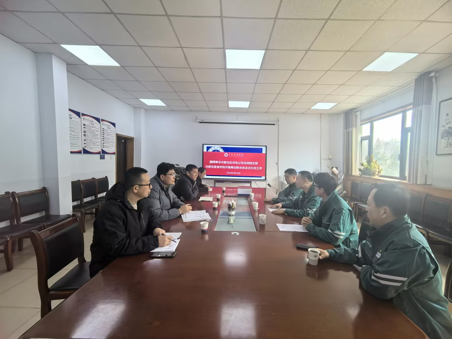 3月18日,灵山卫供电所一行4人莅临我校,开展青创联合体走访交流活动。崔久岗部长、刘松芝副部长在301会议室进行了接待,对灵山卫供电所多年来给予学校电力保障工作的大力支持与帮助表示衷心感谢。双方围绕我校供电设备日常运行、维护保养情况,以及学校30周年校庆活动保供电相关事宜进行深入沟通交流。