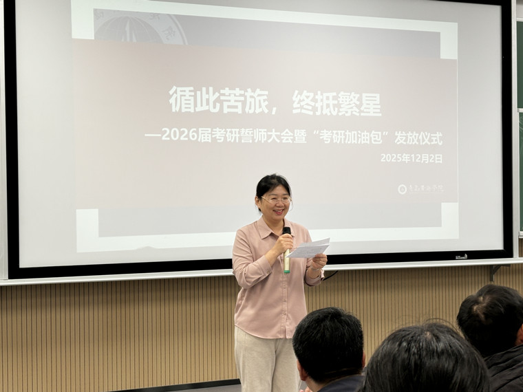 大会由綦盛楠副院长主持。她首先开场致词,希望通过本次活动为考研学子暖心充电、提振士气,以最佳状态迎接考试。