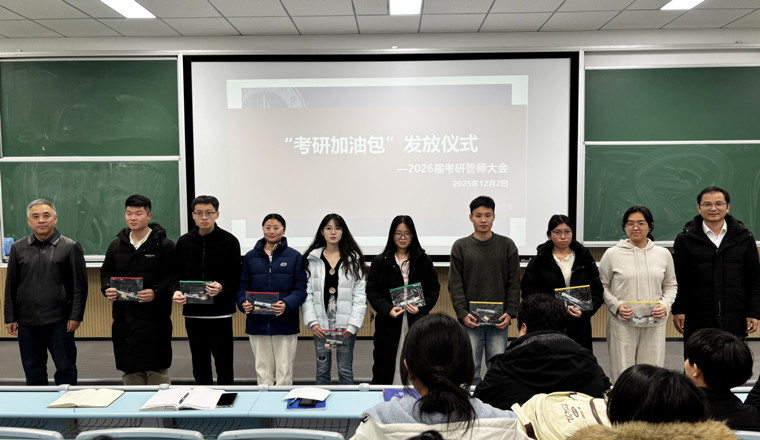 “不负恩师厚望,不负青春梦想!” 随后,全体备考学生庄严宣誓,誓言将以最坚韧的毅力投入最后冲刺,力争金榜题名,为学院增光。宣誓结束后,学院领导为学生们发放了“考研暖心包”,并合影留念。