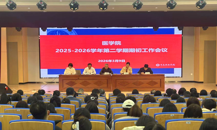 3月9日下午,医学院在知明楼报告厅隆重召开2026年春季学期初全体教师工作会议。会议旨在全面复盘2025年各项工作,深入分析当前面临的发展形势,并对新学期的重点任务进行部署。副校长兼医学院院长王鹏程、医学院常务副院长王芝发、副院长綦盛楠、院长助理逄锦涛、谭姣姣博士等领导出席会议。会议由医学院常务副院长王芝发主持。