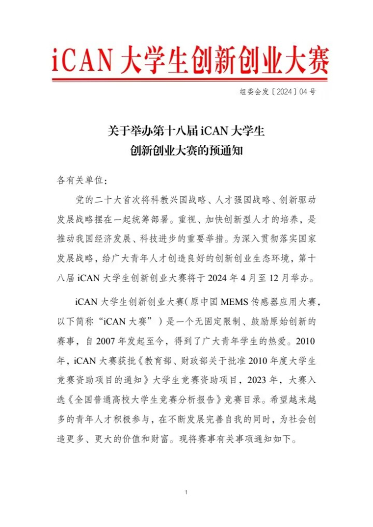 关于举办第十八届iCAN大学生创新创业大赛的预通知