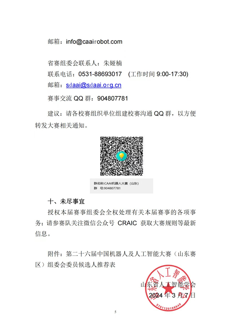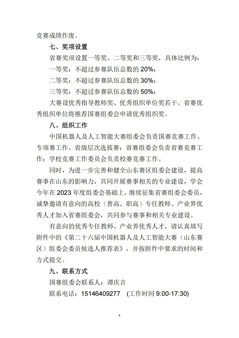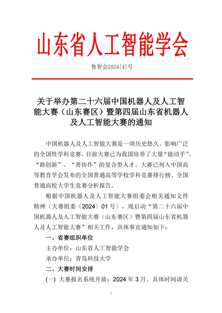 关于举办第二十六届中国机器人及人工智能大赛(山东赛区)暨第四届山东省机器人及人工智能大赛的通知