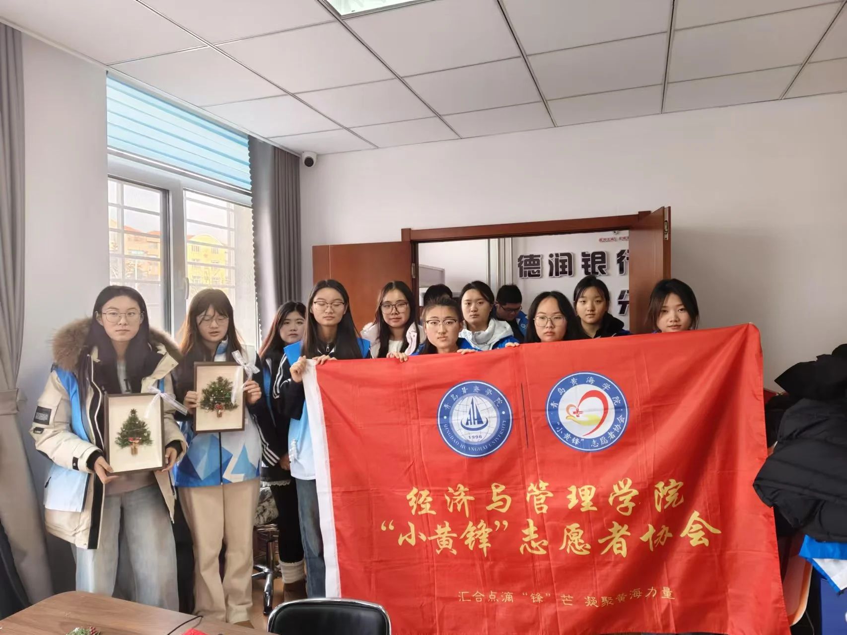 在制作过程中,青岛黄海学院经济与管理学院“小黄锋”志愿者协会的志愿者们充分展现了劳动精神。他们不嫌繁琐,耐心地指导每一位参与者,手把手地教她们如何制作出美观又稳固的圣诞树。有的志愿者负责剪裁材料,有的志愿者专注于装饰细节,大家分工明确,却又紧密配合,就像一个和谐的大家庭。即使遇到一些小困难,如材料不够或者装饰不顺利,也没有人抱怨,而是积极地想办法解决。