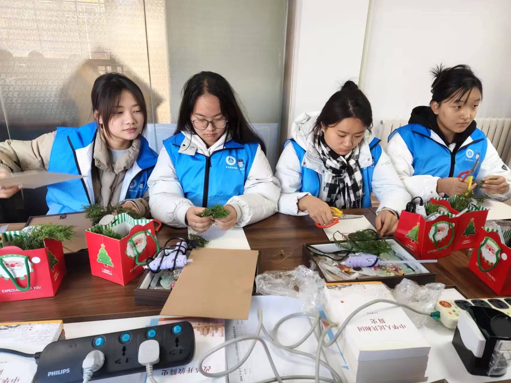 在这个寒冷的冬日,青岛黄海学院经济与管理学院“小黄锋”志愿者协会积极响应“带百万大学生进社区”的号召,走进社区,为女性朋友们带去了温暖与关怀,青岛黄海学院经济与管理学院“小黄锋”志愿者协会的志愿者们与社区精心筹备了一场别开生面的圣诞树手工活动。活动现场,五彩斑斓的装饰材料摆放整齐,充满了节日的氛围。志愿者们与社区女性们携手合作,从搭建圣诞树的框架到细致地缠绕彩带、挂上精美的小饰品,每一个步骤都凝聚着大家的热情与专注。