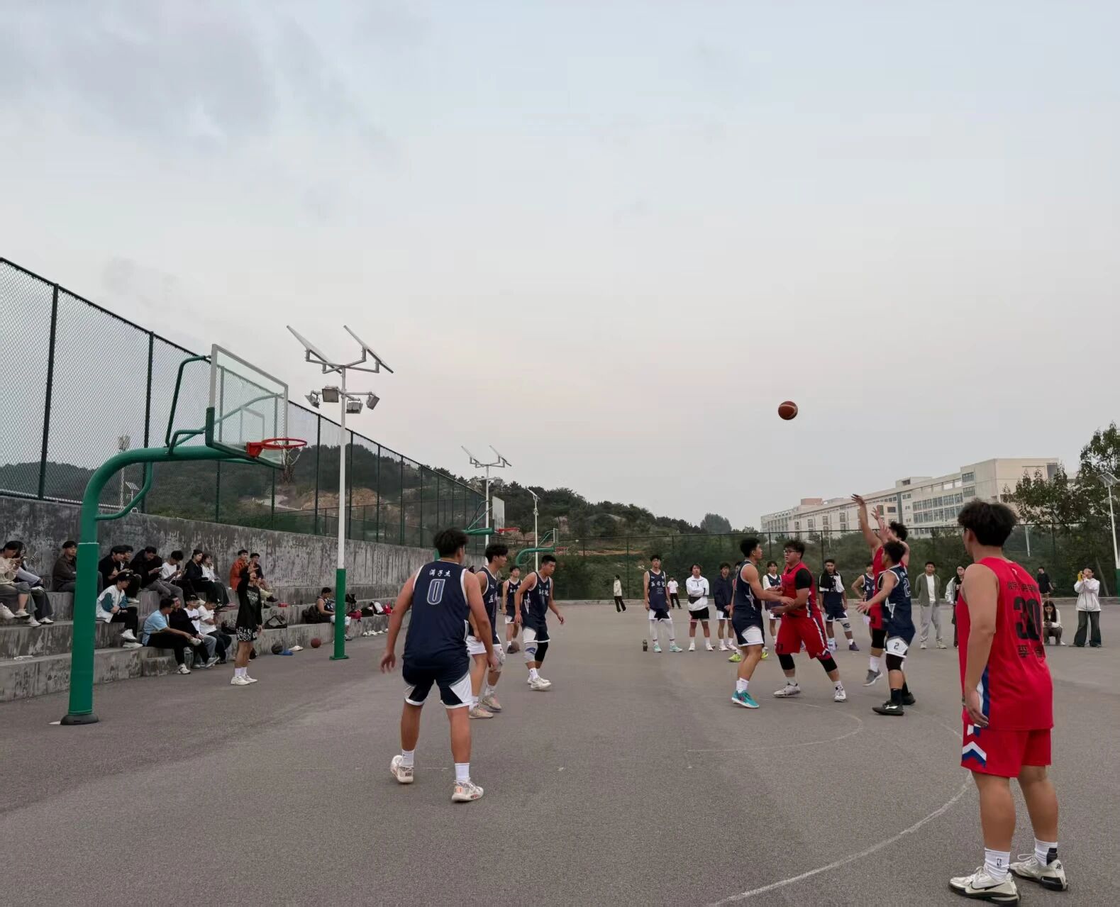 10月16日,虎山操场上欢呼声此起彼伏,数字商务学院与医学院的男篮小组赛在此激烈上演。
