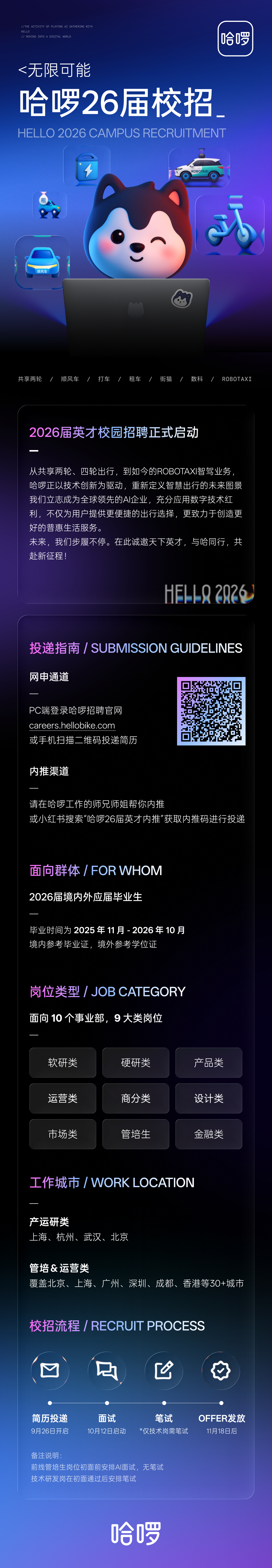 招聘信息 | 校招 | 哈啰2026届英才校园招聘正式启动