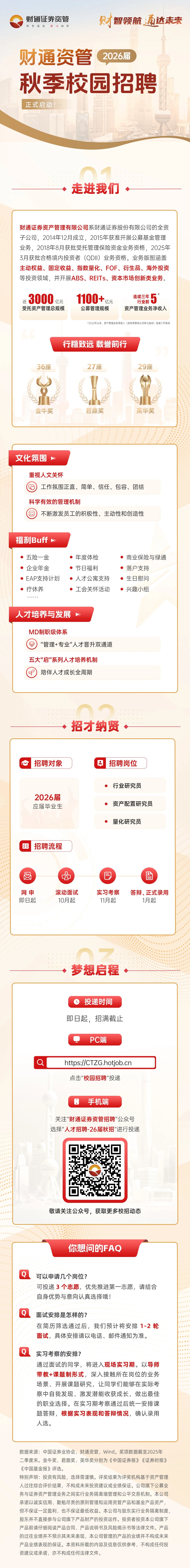 招聘信息 | 财通资管2026届秋季校园招聘正式启动!