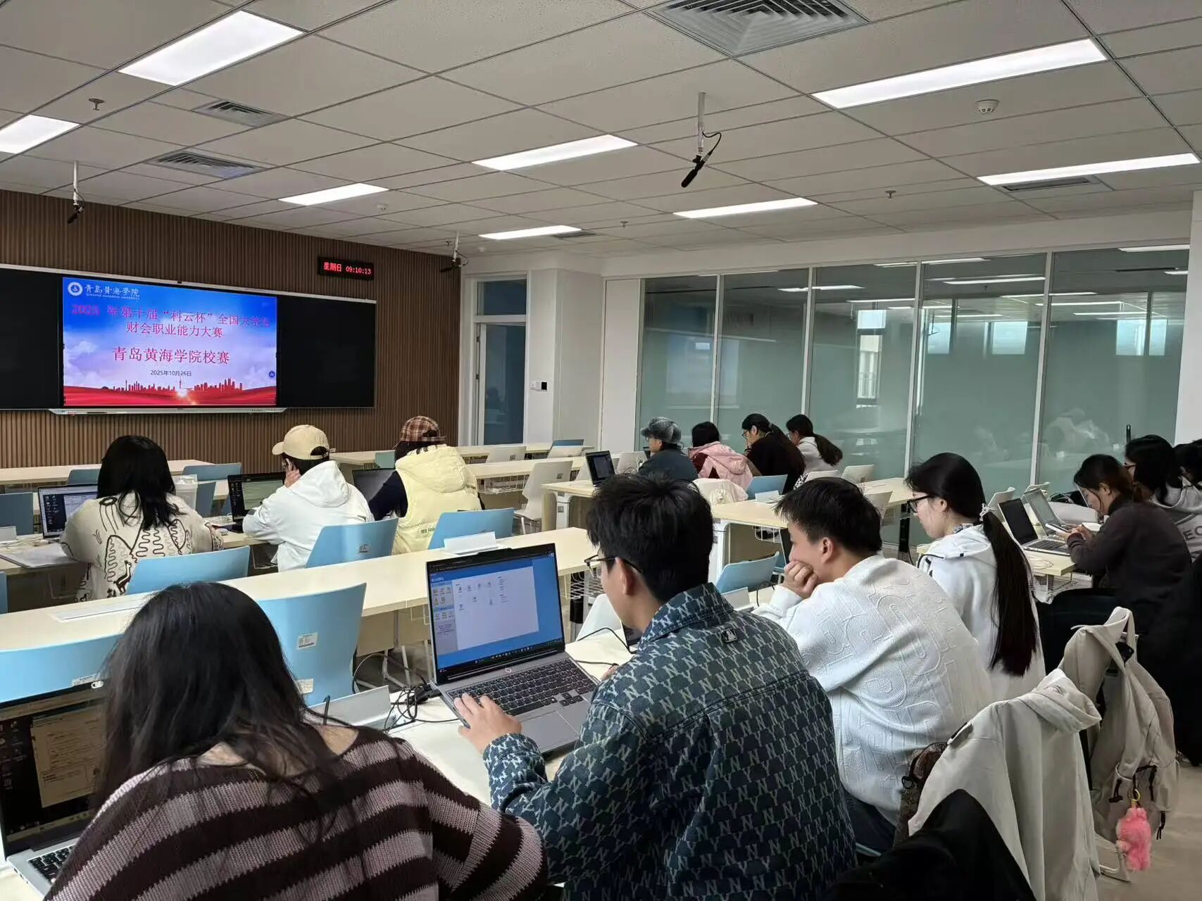 10月26日,由财会金融系承办的2025第十届“科云杯”全国大学生财会职业能力大赛青岛黄海学院校赛在学校知信楼顺利举行。本次比赛学院本科与专科层次的十支队伍同场竞技,经过一天的激烈角逐,最终本科组loopy大王队、玛卡巴卡队与专科组财税智囊团、财报风控队两支队伍成功晋级,将代表我校参加11月22日举行的省内网络选拔赛。
