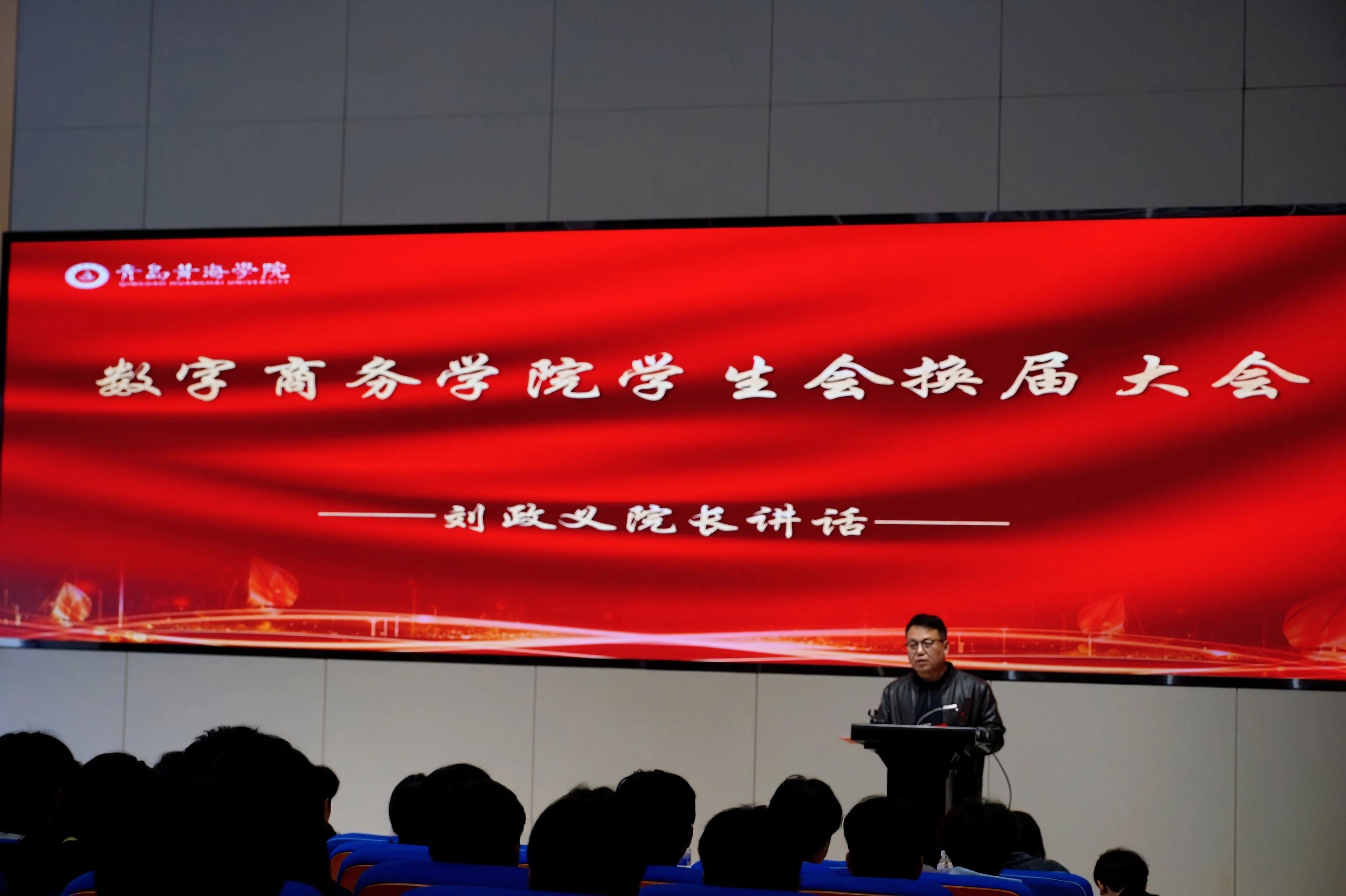 为加强学生会干部队伍建设、保持学生会干部队伍的服务意识,2025年10月31日,于知行楼434报告厅举行数字商务学院新一届学生会换届大会。出席此次会议的有数字商务学院副院长刘政义、学工主任武志强、团总支书记仪晓霖、就业秘书朱升学以及部分辅导员老师,由仪晓霖书记主持宣布本次会议的开始,见证责任交接。