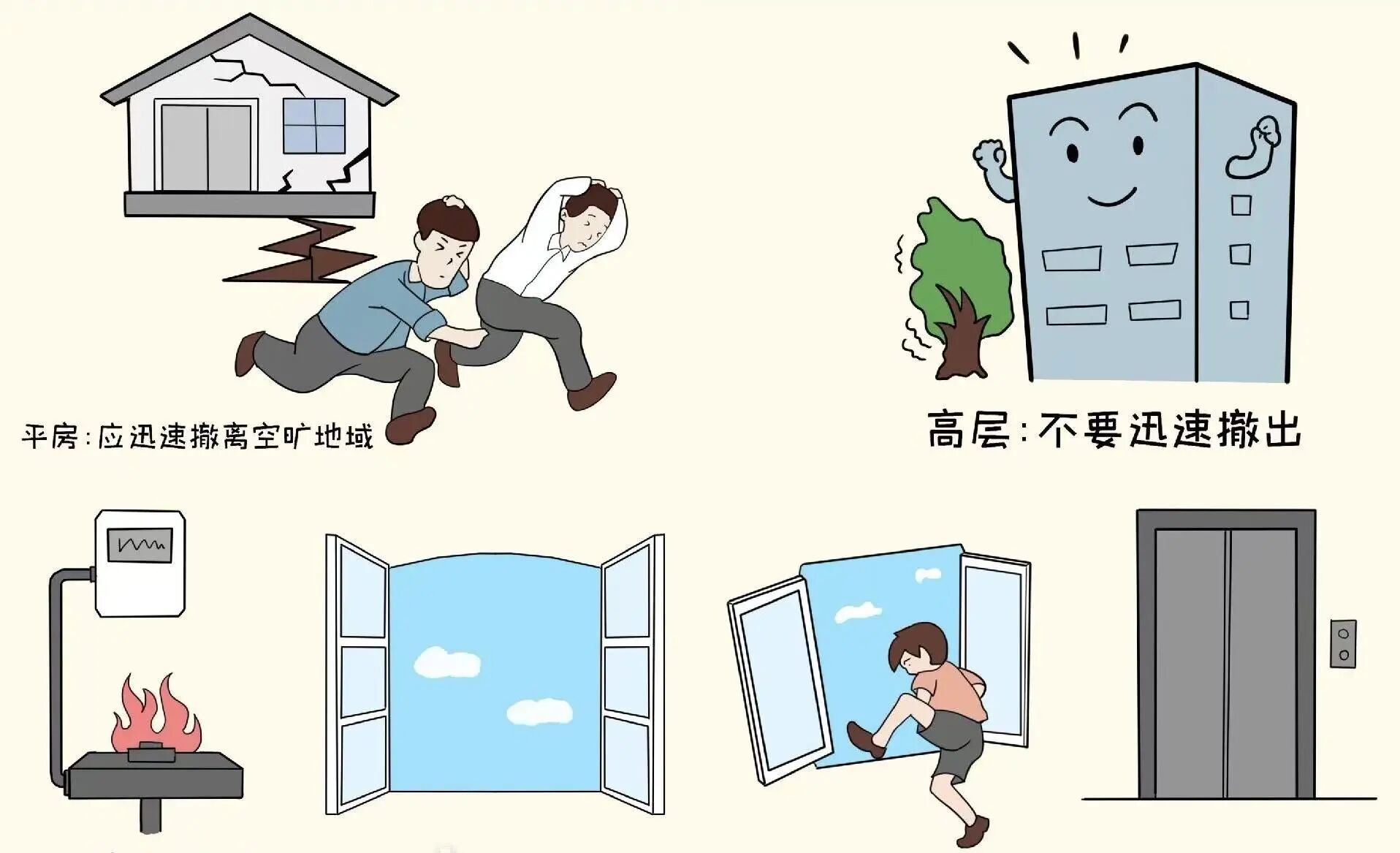 立刻前往操场、广场等开阔地带,蹲下降低重心,双手护头。避开教学楼、电线杆、广告牌等高大建筑物及危险设施,切勿在狭窄通道、围墙附近停留,待震动完全停止后再有序移动。