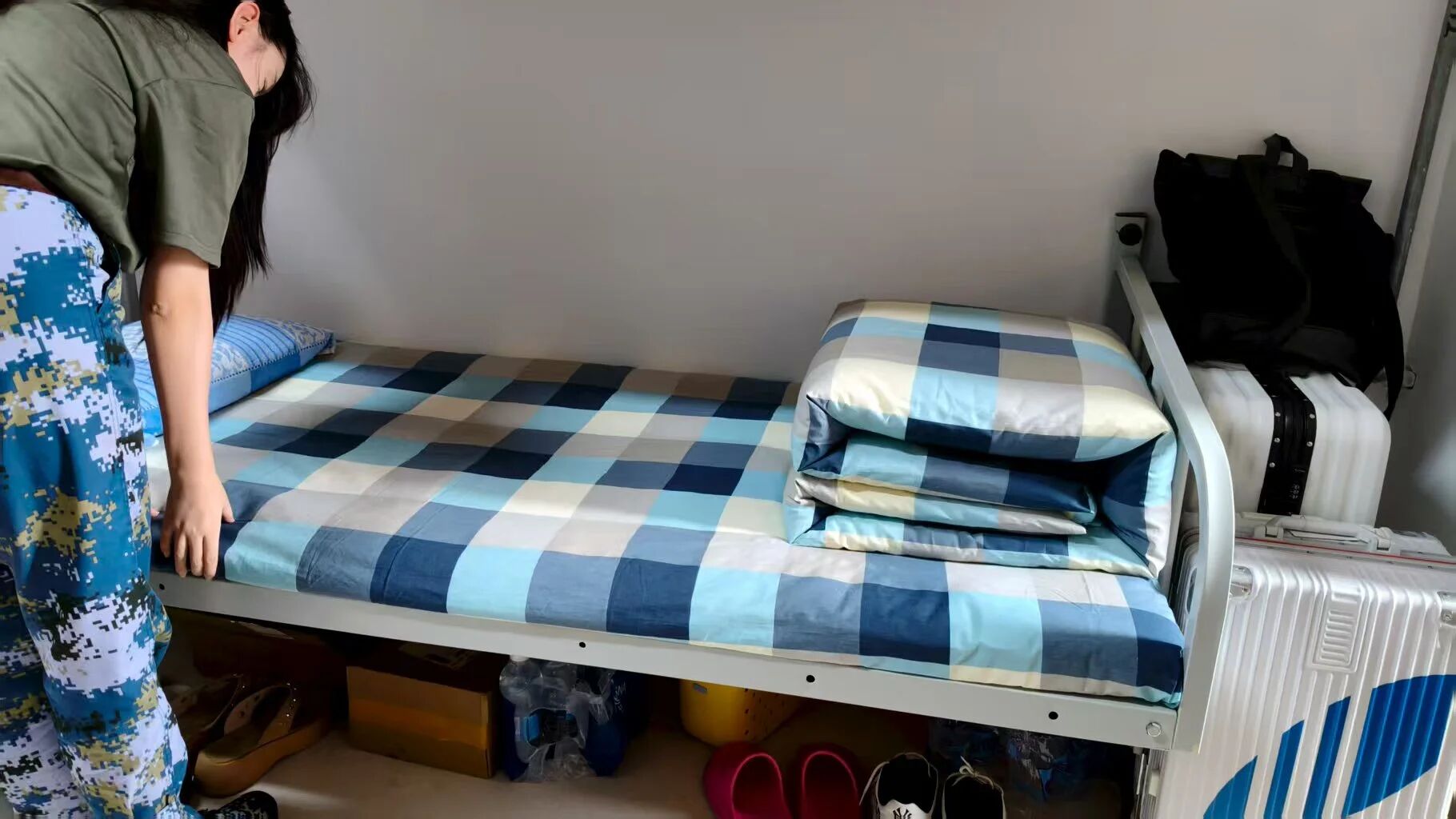1. 床铺整理:大部分同学能够利用短暂的时间,将床铺整理得平整、整齐,展现了良好的纪律性和细致性。