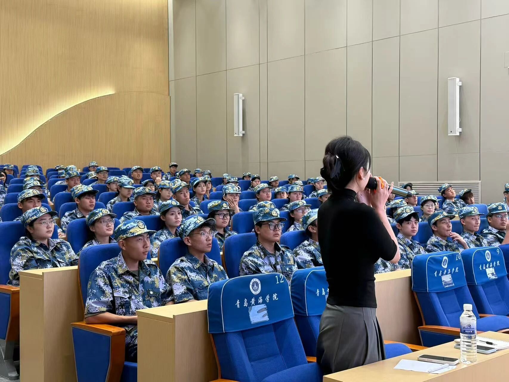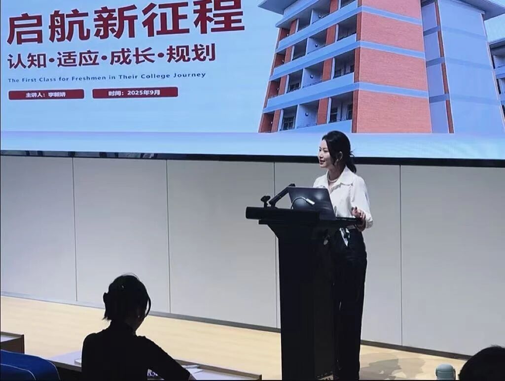 在大家对专业有了初步了解后,北京华航航空服务有限公司青岛黄海学院教学主任李新娇老师紧接着带来了精彩分享。李主任以 “职业规划” 为核心,结合航空行业的实际需求,为新生们讲解了如何在大学期间做好职业准备,如何将专业学习与行业实践紧密结合。更令人期待的是,李主任还邀请了拥有丰富一线工作经验的专业教师来到现场,通过现场讲解与演示,让新生们直观地感受到了空乘岗位的工作内容与专业要求。也让新生们深刻体会到 “纸上得来终觉浅,绝知此事要躬行” 的道理,为今后的实践学习奠定了良好基础。