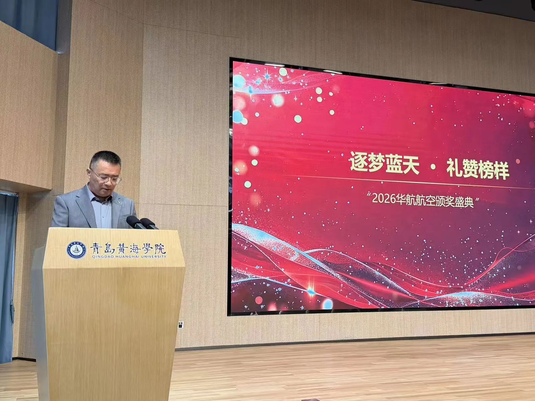 影视学院副院长齐海明上台致辞,齐院长肯定了学生成绩,强调校企合作,对航空学子提出成长期望。大赛是检验教学成果,展示学生风采平台,华航奖学金是校企合作育人纽带,体现学院育人成果及校企产教融合。奖学金给予获奖学生物质支持与精神激励,期望他们成为品德高尚的航空人才,感恩奋进,严格要求自己。希望全体航空专业学子以榜样为力量,深耕专业技能,锤炼职业素养,在航空领域逐梦远航。