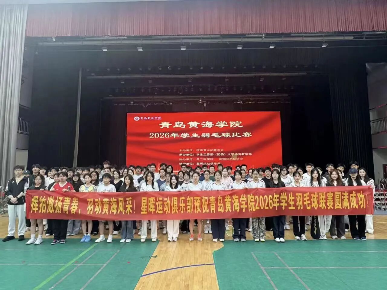 2026年4月11日至12日,青岛黄海学院2026年学生羽毛球比赛在学校体育馆燃情开赛。应用技术学院踊跃参加团体赛、男单、女单、男双、女双、混双等羽毛球项目,以饱满的热情、昂扬的斗志投入每一场对决,全力以赴,斩获多项荣誉,彰显了昂扬向上的精神风貌与永不言弃的体育精神。