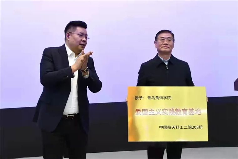 张艇亚代表中国航天科工208所授予青岛黄海学院“爱国主义实践教育基地”。中国工程院院士、制导系统工程专家钟山院士专程为祝贺基地建成发来视频,他在贺词中提到:希望今后双方可以不负众望,不断深化合作,用红色文化教育传播科技强国理念,传承科学精神,激发青少年热爱祖国,崇尚科学,探索未知,敢于创新的热情,为实现中华民族伟大复兴的中国梦凝聚强大的力量。
