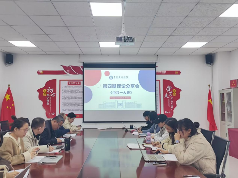 2025 年 11 月5 日上午,青岛黄海学院马克思主义学院中国近现代史纲要(以下简称“史纲“)教研室理论分享会在雷锋馆208如期举行。青年教师孙小源以中共党史专家邵维正教授编著的《中共一大史》为核心,开展专题理论分享活动。
