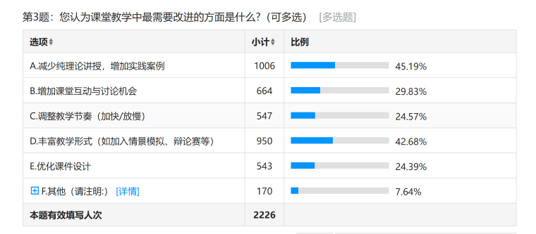 知识点学习层面,“理论与实践脱节”成为核心痛点。43.31%的学生认为理论过于抽象、缺乏实际案例支撑,65.77%的学生希望课堂上针对重点章节深入讲解。