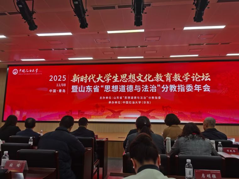 为深入学习贯彻习近平总书记关于教育的重要论述和关于思政课建设的重要指示精神,积极探索新时代高校思政课建设创新性发展,11月8日,由山东省思想道德与法治教指导委主办、中国石油大学(华东)承办的新时代大学生思想文化教育教学论坛暨山东省思想道德与法治教指委年会在青举行,我校派马克思主义学院院长助理朱秋莲和思想道德与法治教研室主任陈丽华老师参会。