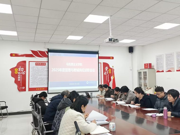 为进一步强化岗位履职担当,提升学院管理服务与教学保障水平,1月12日上午,马克思主义学院组织召开管理和教辅岗位工作人员述职评议会议。院长李安增、副院长司林梅、院长助理朱秋莲、党总支书记谈笑出席会议并点评,7位教研室主任及行政秘书、教学秘书、科研干事、办公室干事、实验室管理员等岗位人员依次作述职汇报。