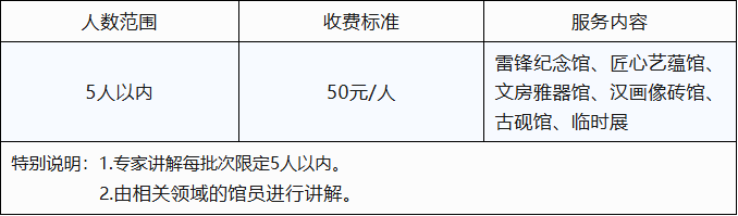 1.预约途径:观众可通过邮箱或拨打电话预约人工讲解服务,请至少提前一天预约,当天不予安排讲解,具体以场馆协调为准。