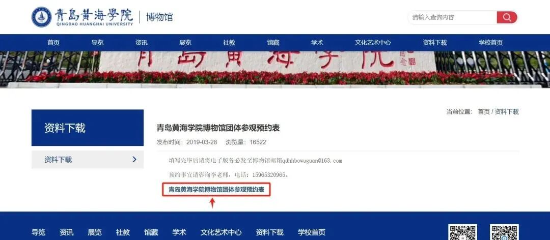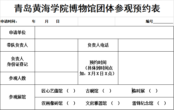 方法二:您可以登录青岛黄海学院博物馆官方网站(青岛黄海学院博物馆),按照下列步骤下载并填写博物馆团体参观预约表。