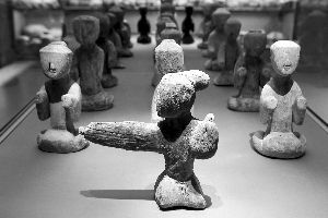 其实,古人们内心里是很萌的。现代快报记者在南博展厅内,发现不仅有萌翻小朋友的“囧江豚”,造型酷似“便便”的陶壶,更有“小猪一家”、指挥交通的汉代“女交警”……