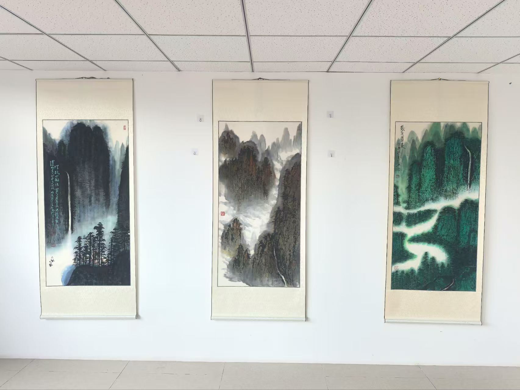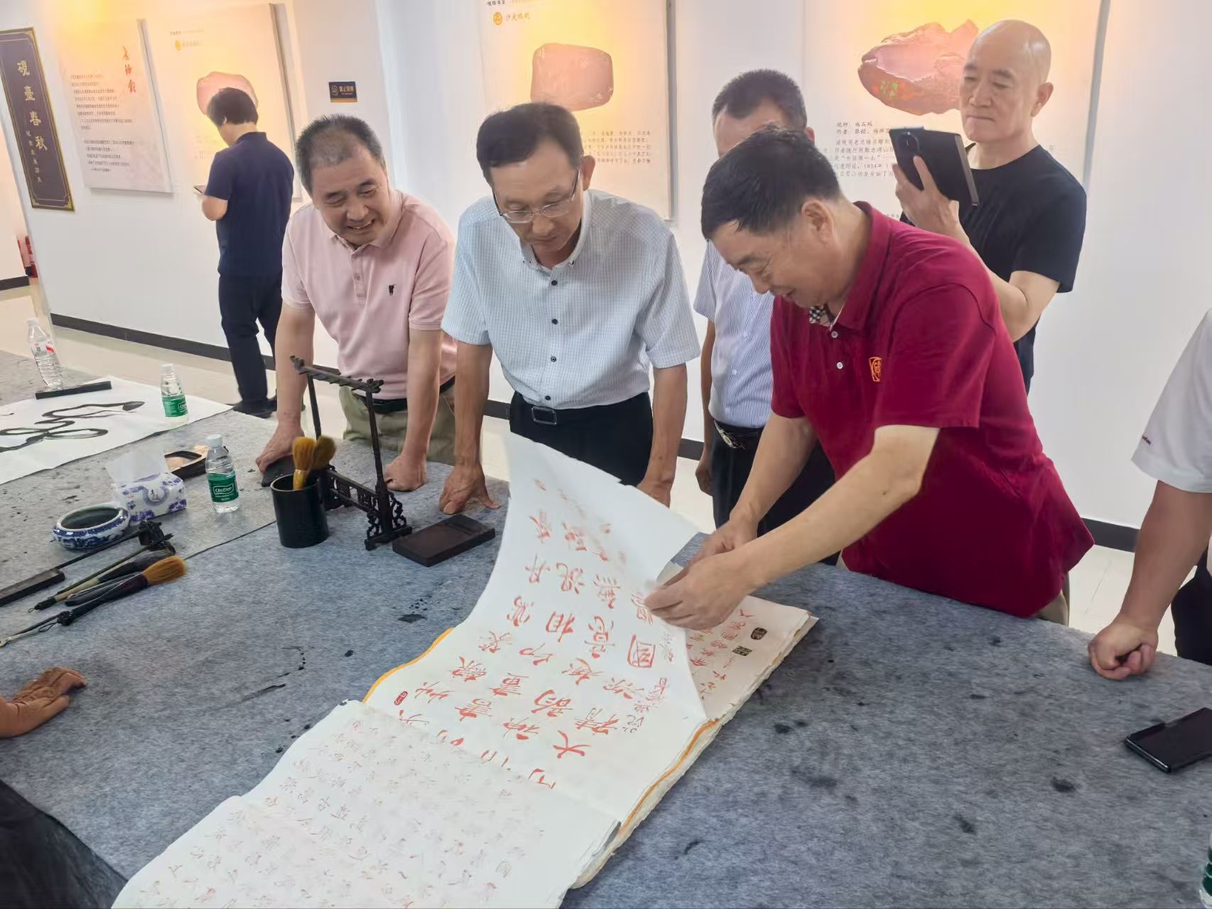 开幕式结束后,嘉宾们怀着期待与兴奋的心情,移步展厅观看展览。展厅内,一幅幅书画作品错落有致地悬挂在墙上,吸引着嘉宾们的目光。他们或驻足凝视,或轻声交流,沉浸在艺术的海洋中,感受着范立忠先生作品的独特魅力。在参观过程中,嘉宾们还不时向范立忠先生请教一些关于书画创作的问题。范立忠先生总是耐心地解答,分享自己的创作心得和体。他的话语中充满了对艺术的热爱和对传统文化的敬畏之情,让在场的每一位嘉宾都深受启发。最后,嘉宾门开展了书法交流活动。大家热情高涨,纷纷拿起毛笔,尽情挥洒笔墨,展现自己的书法才艺,现场墨香四溢,气氛热烈。
