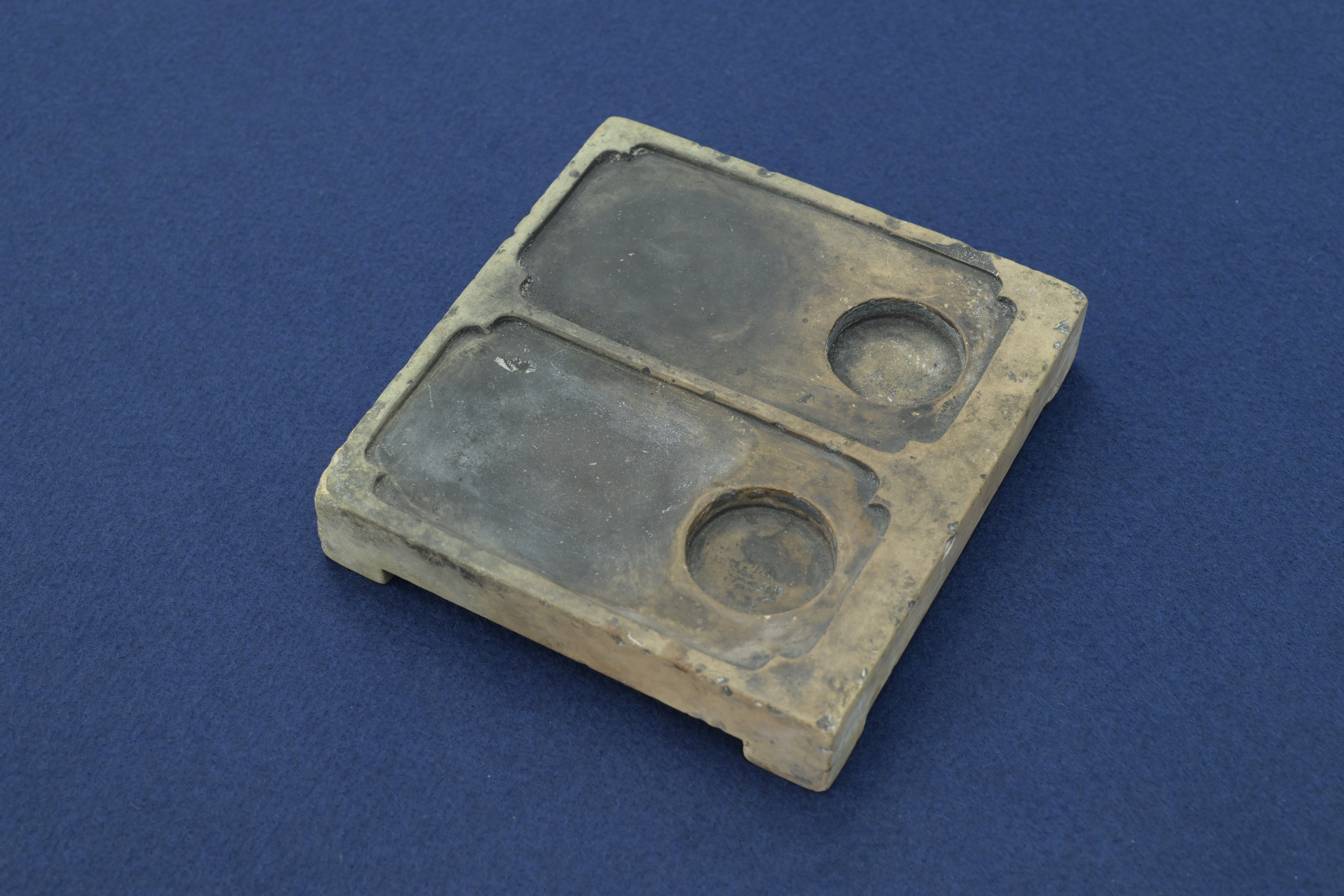 砚面呈现出双池的独特造型,两个砚池规整排列,池沿线条流畅自然。这样的设计,不仅满足了研磨不同墨色等实用需求,更在对称布局中,展现出明代制砚工艺对形式美感的追求,仿佛在静默中诉说着古人于文房之事上的精致用心。