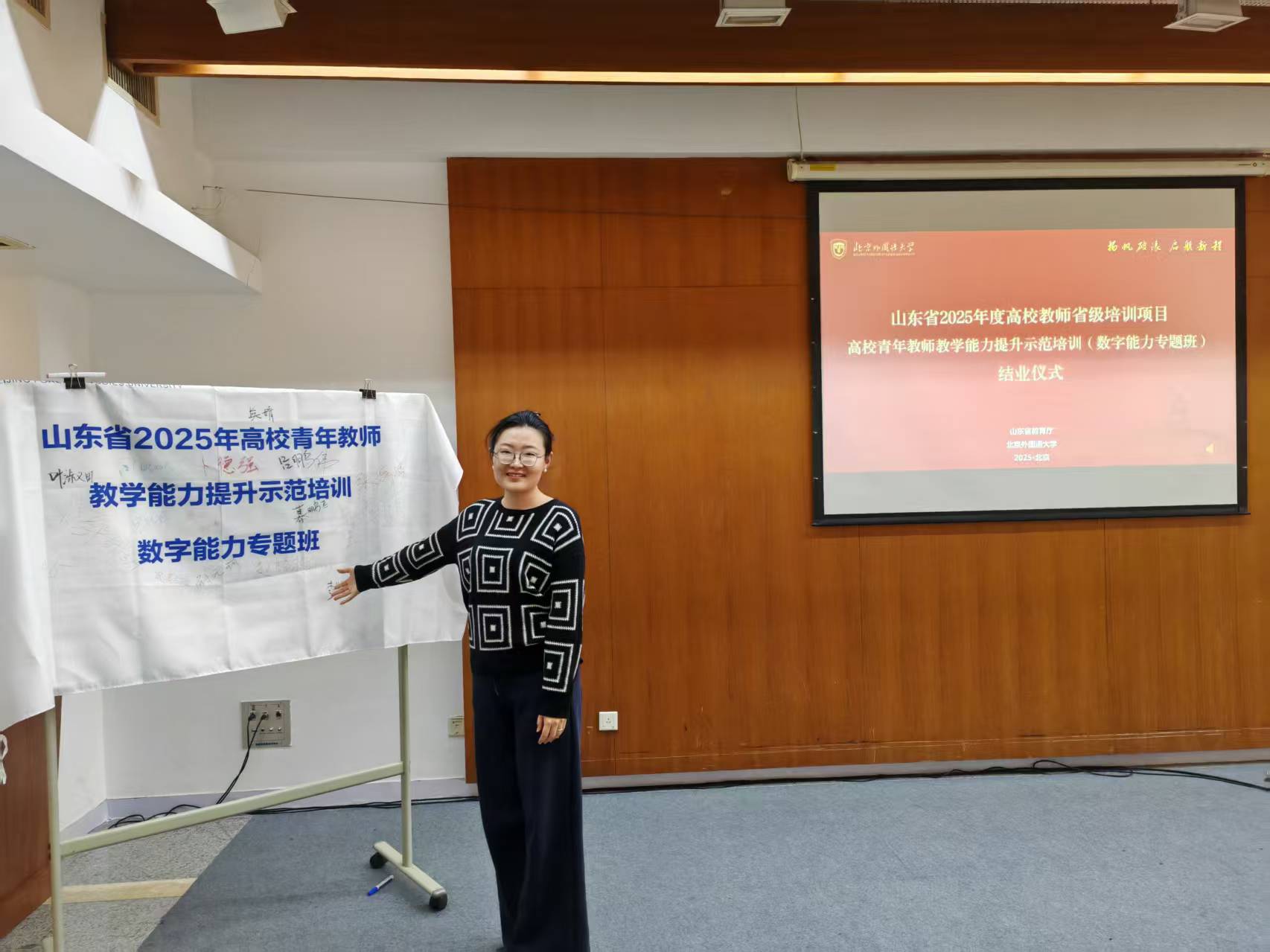 为深化育人思维、精进教学能力,近日,我院青年教师于笑夏赴北京参加由山东省教育厅主办、北京外国语大学承办的2025年度高校青年教师教学能力提升示范培训。此次培训以“深化育人思维,拓展学术视野,精进教学能力,铸牢师者初心”为目标,通过专家讲座、实践研学、技能实训等多元形式,为全省155名省属普通本科高校青年教师搭建了高质量学习交流平台。