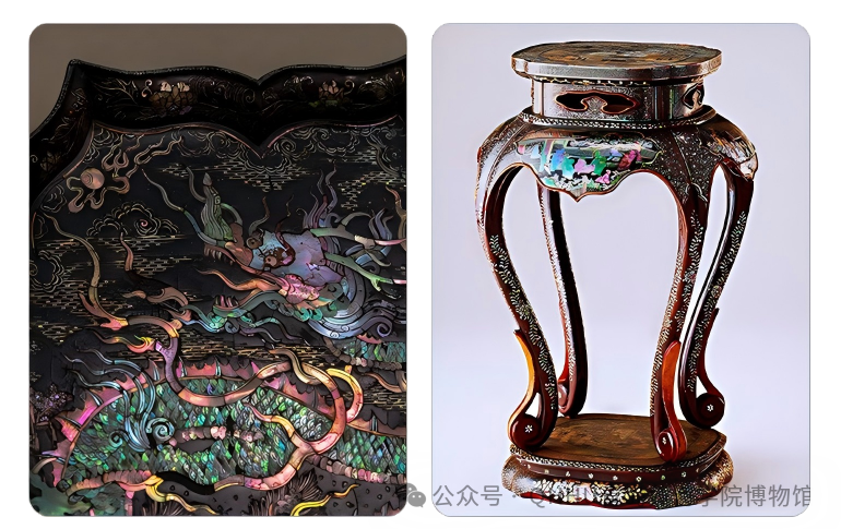 螺钿龙纹涛纹盘-元代、螺钿人物故事香几-元代